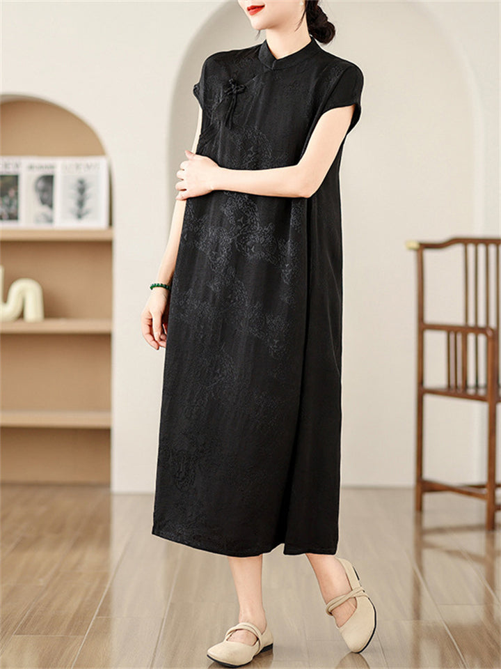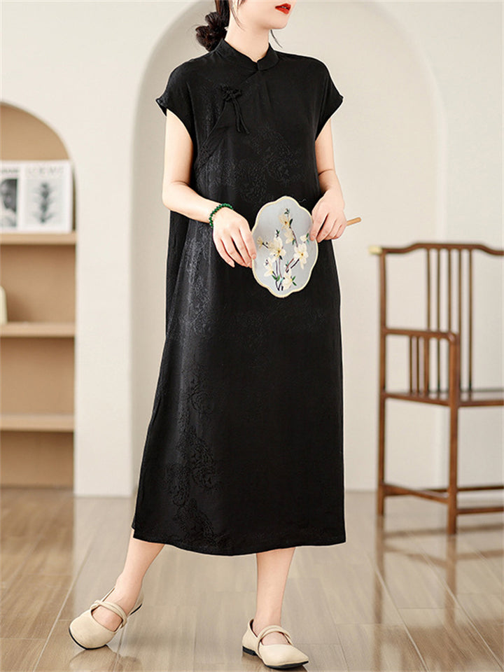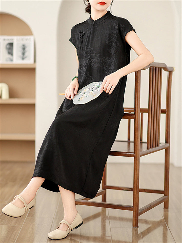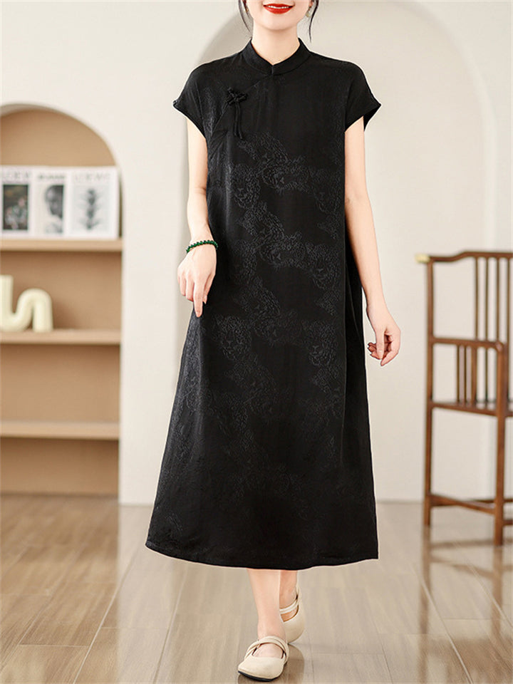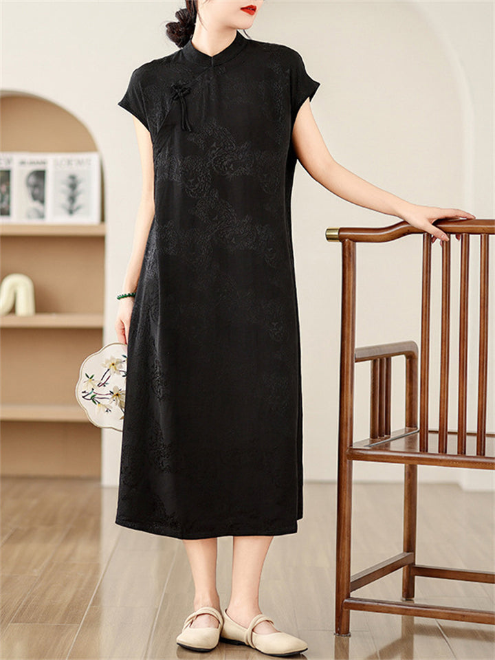 Women's Chinese Style Elegant Jacquard Stand Collar Qipao Dress