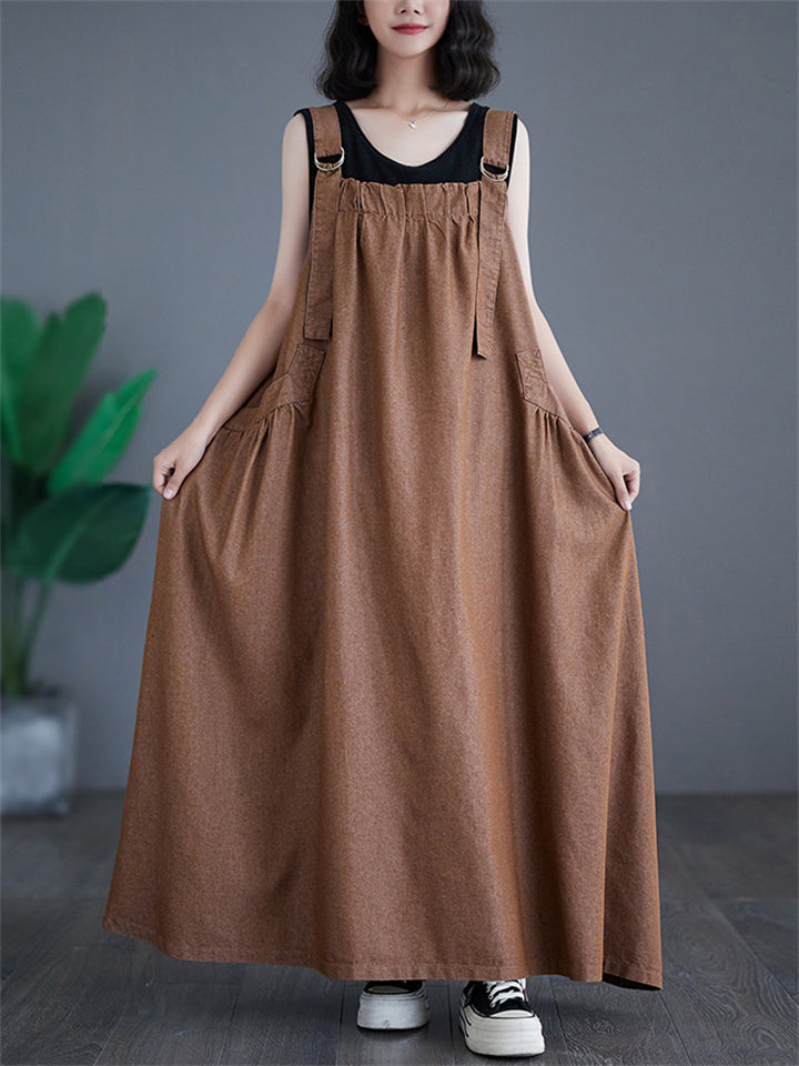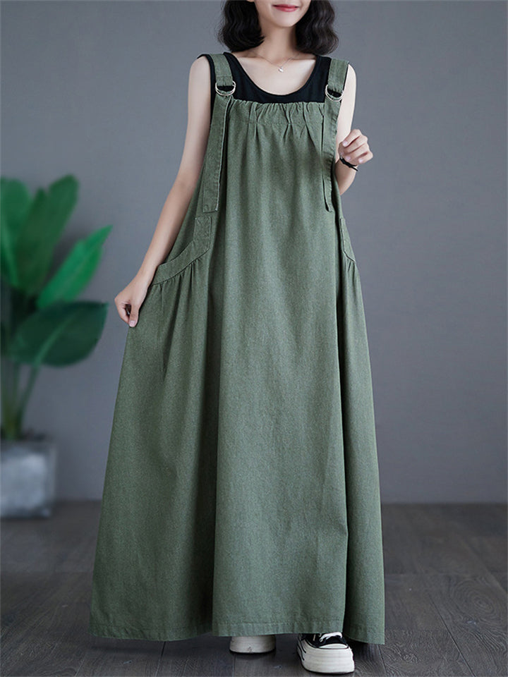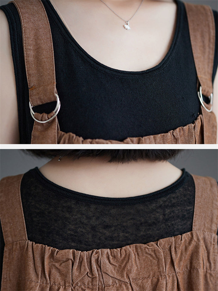 Women's Cute Retro Oversized Denim Suspenders Dress