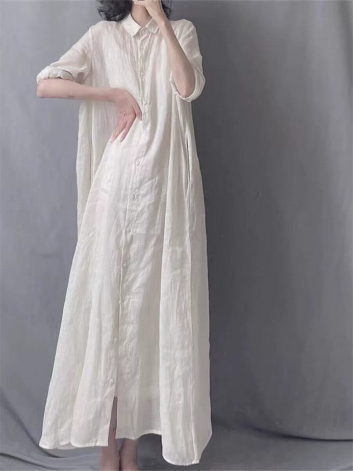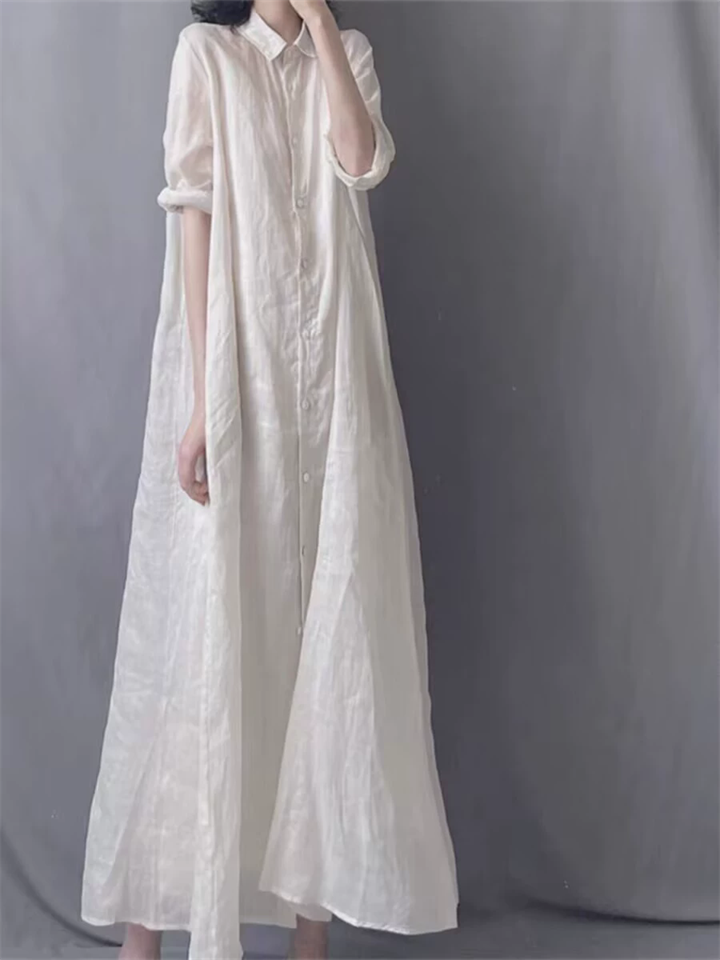 Women's Elegant White Solid Color Loose Button Up Shirt Dress