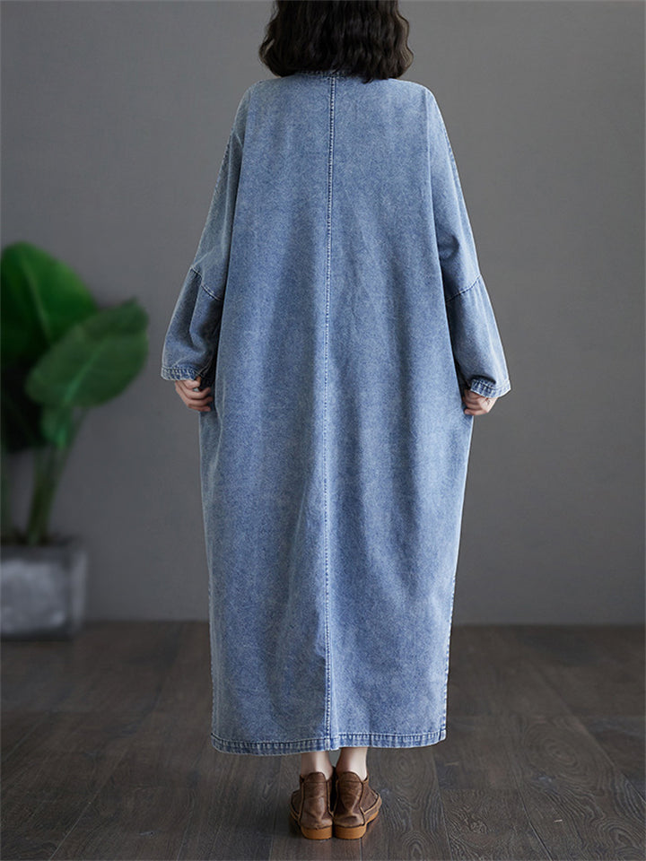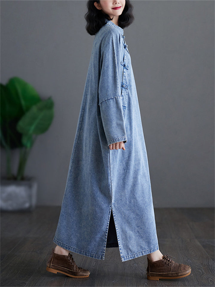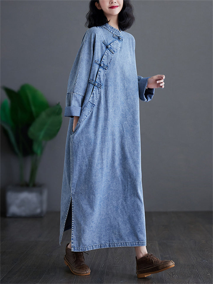 Women's Ethnic Style Side Split Mid-length Denim Dress