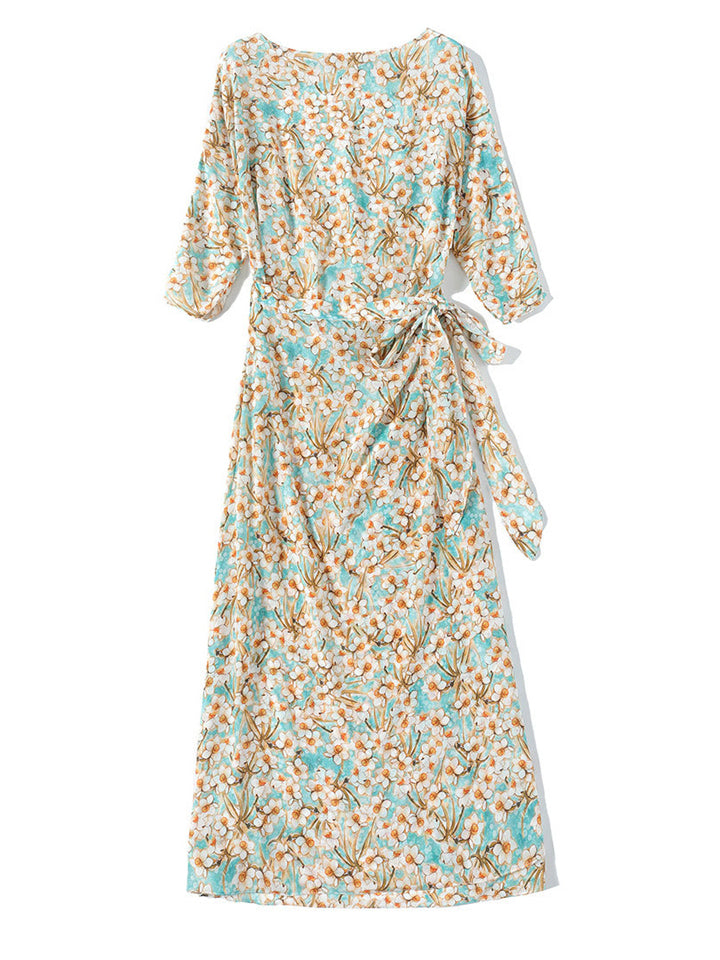 Women's Summer Printed Patchwork Half Sleeve Big Hem Maxi Dress
