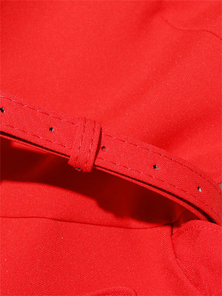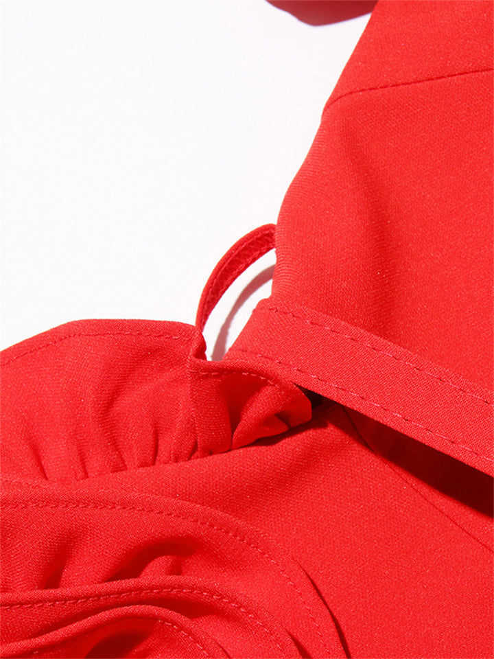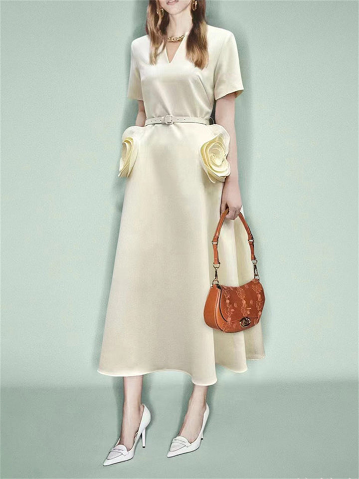 Women's Graceful V-Neck 3D Rose Applique Belted Dress