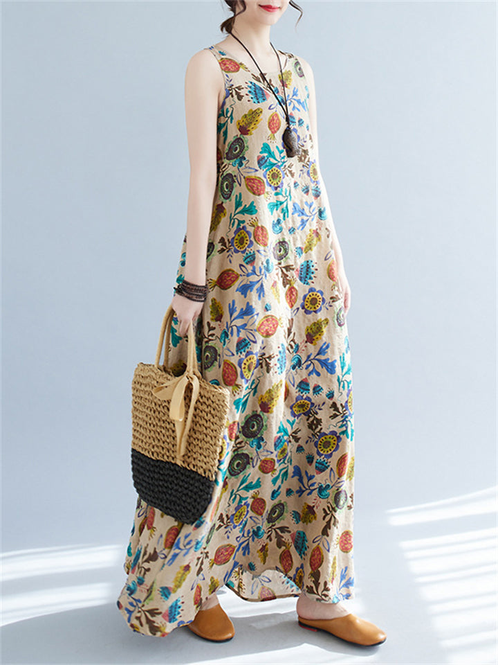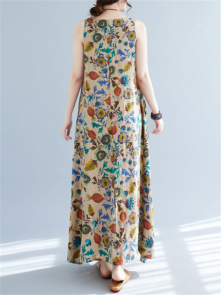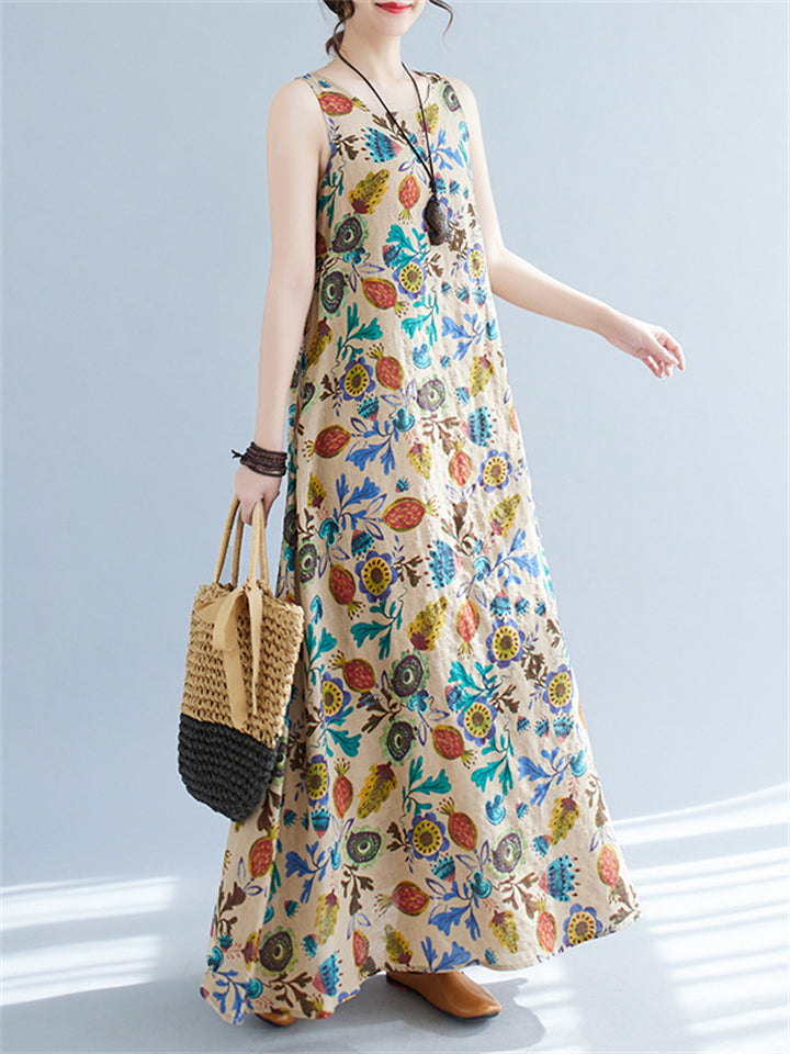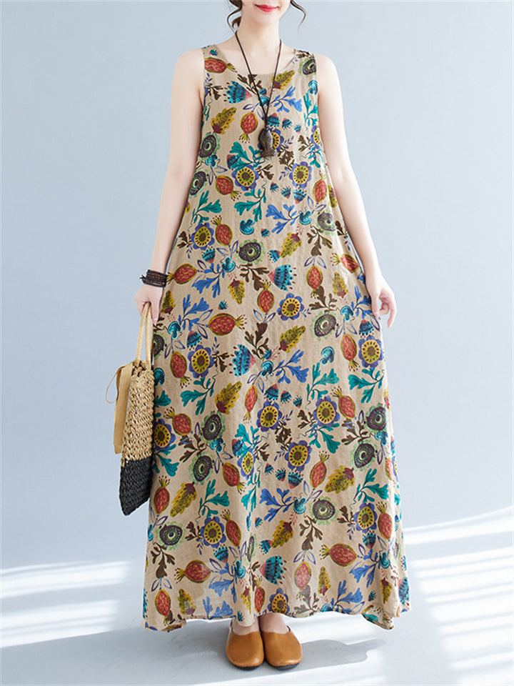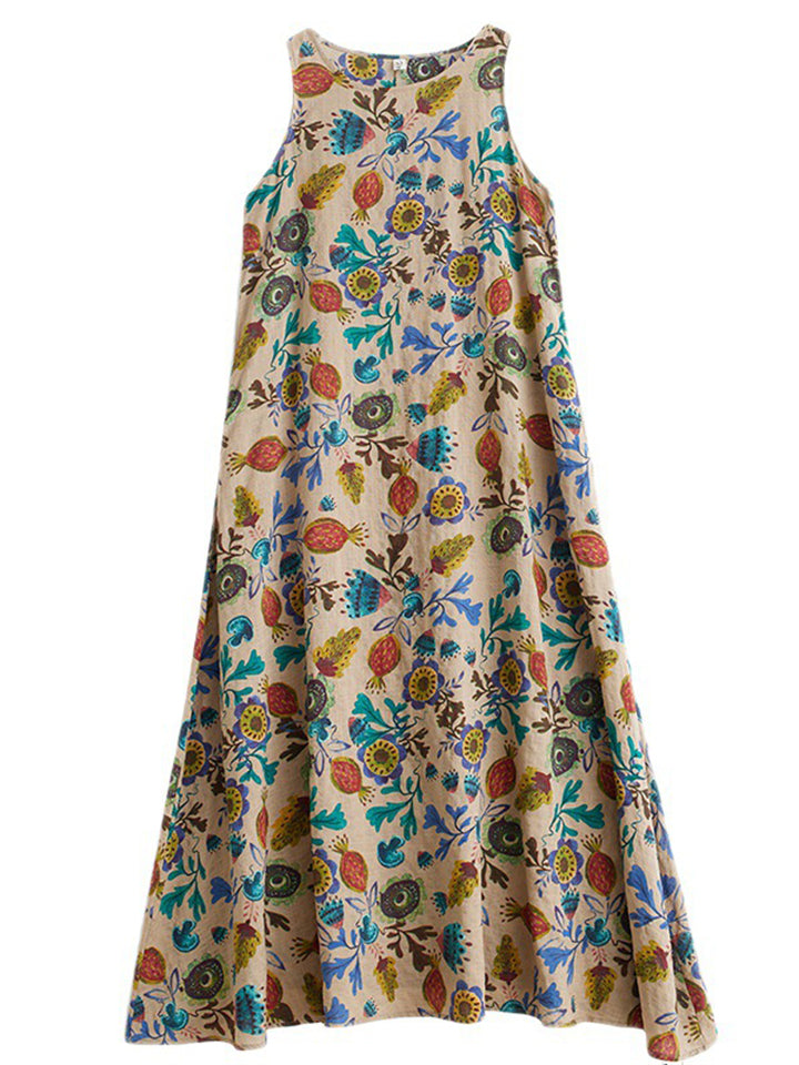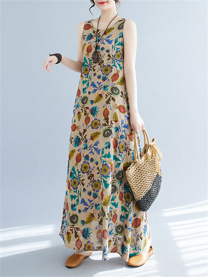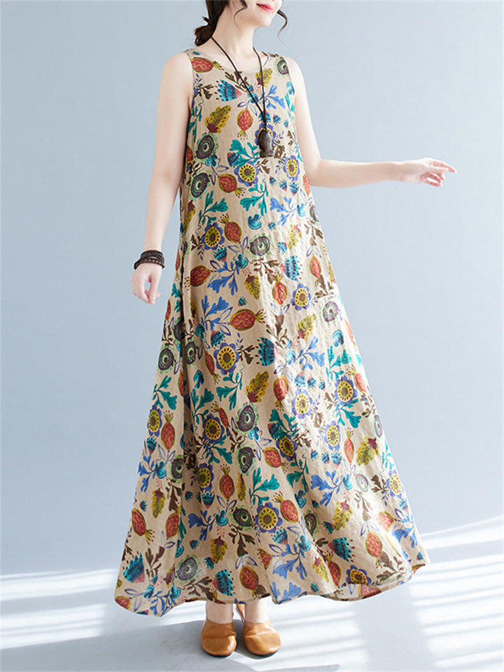 Women's Leisure Round Neck Sleeveless Print A-Line Dress