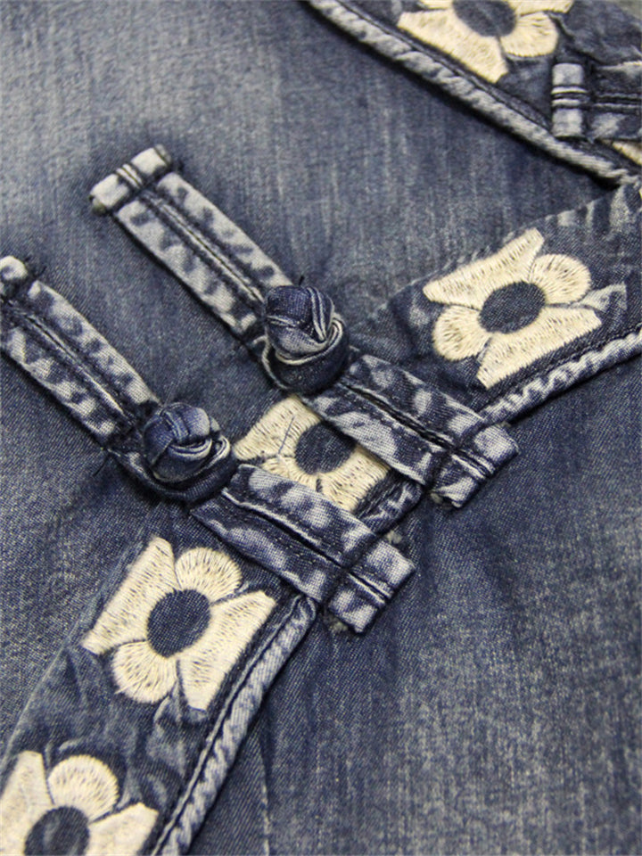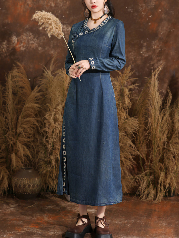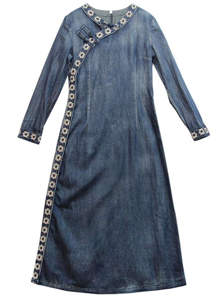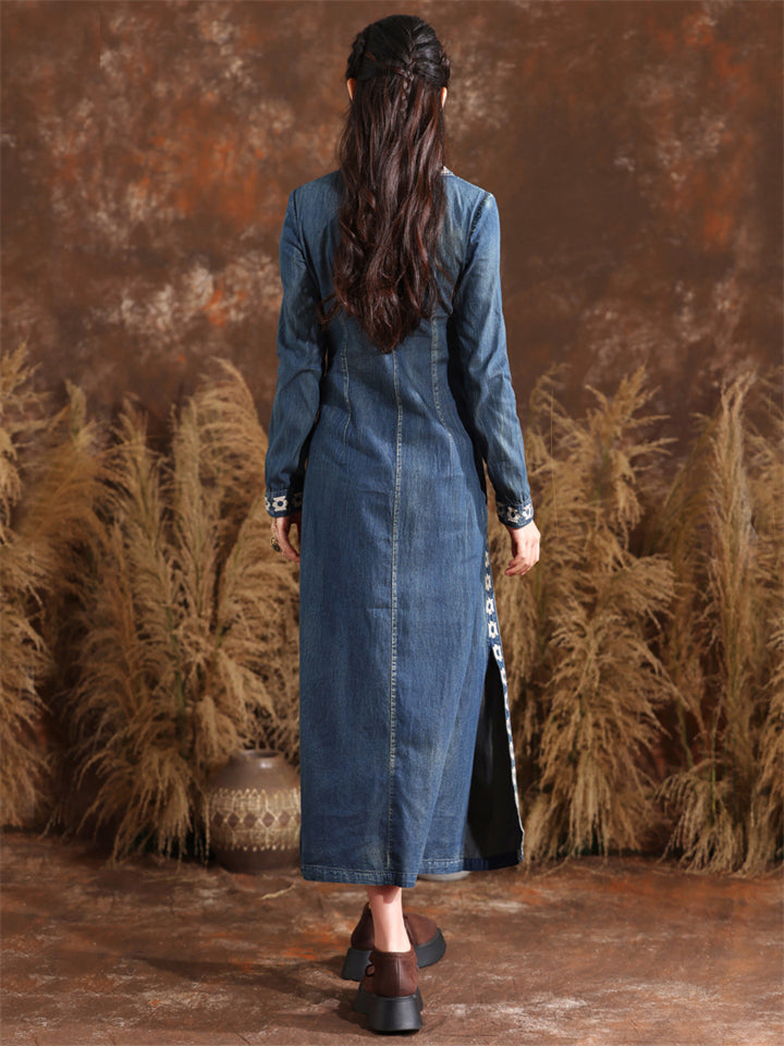 Women's Long Sleeve Modified Cheongsam Denim Dress