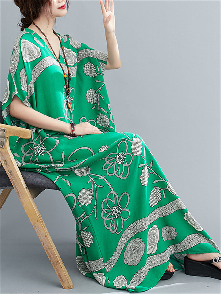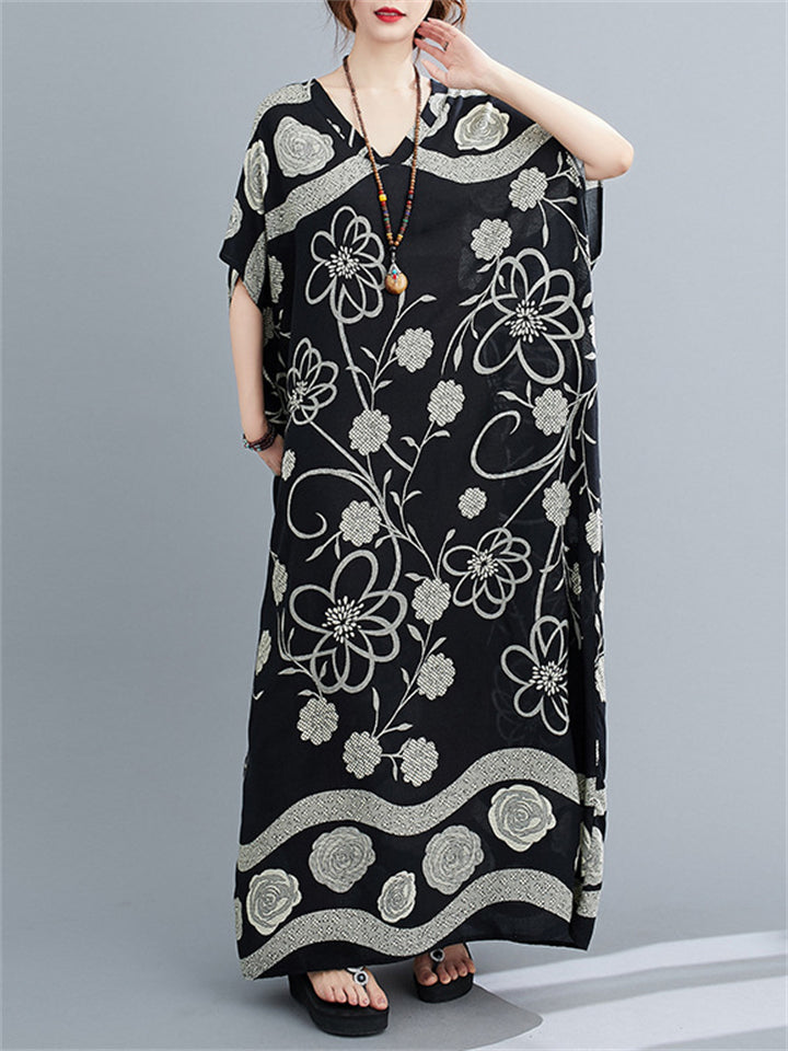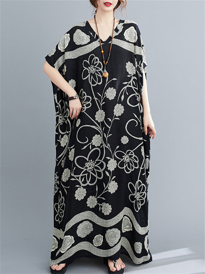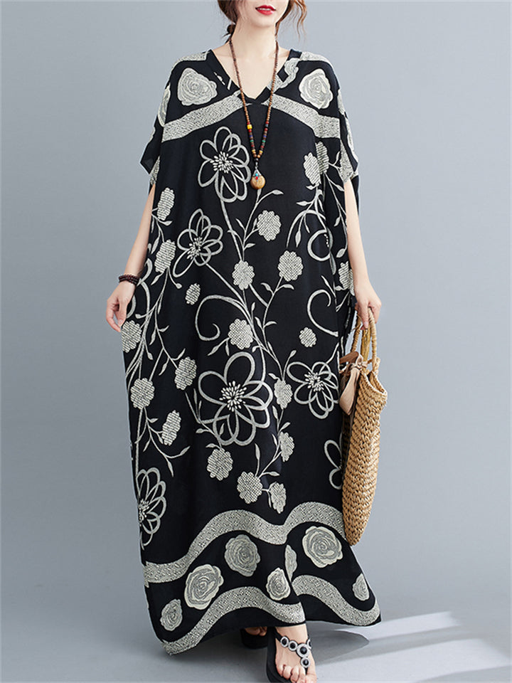 Women's Trendy Ethnic Holiday Style Print V Neck Maxi Dress