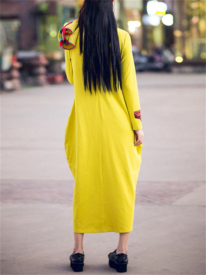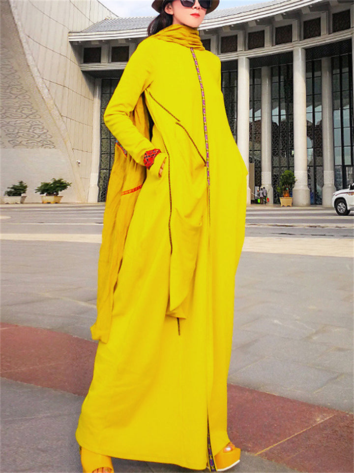 Women's Casual Solid Color Round Neck Double-layer Big Hem Midi Dress