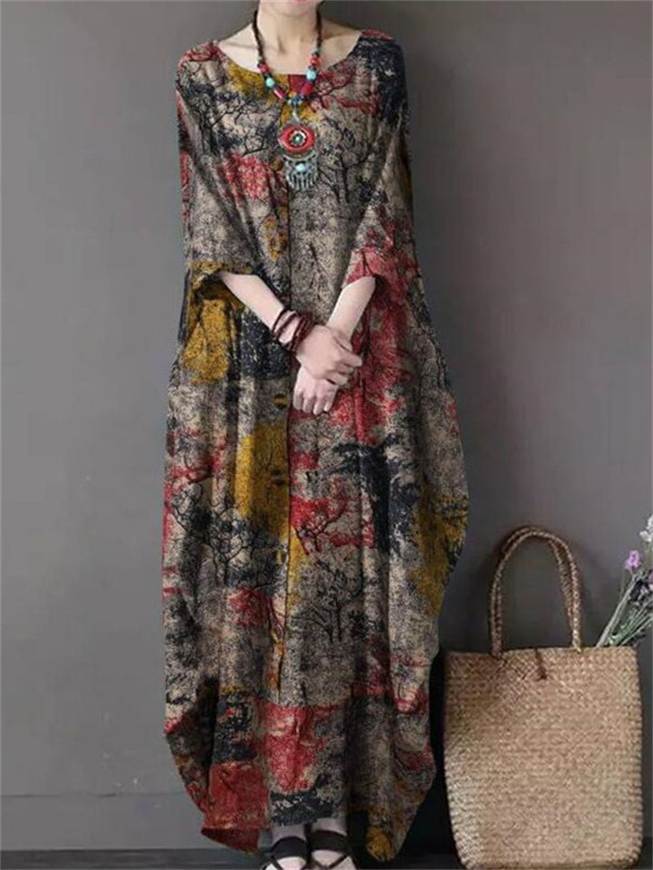 Women's Trendy Ethnic Holiday Style Print V Neck Maxi Dress