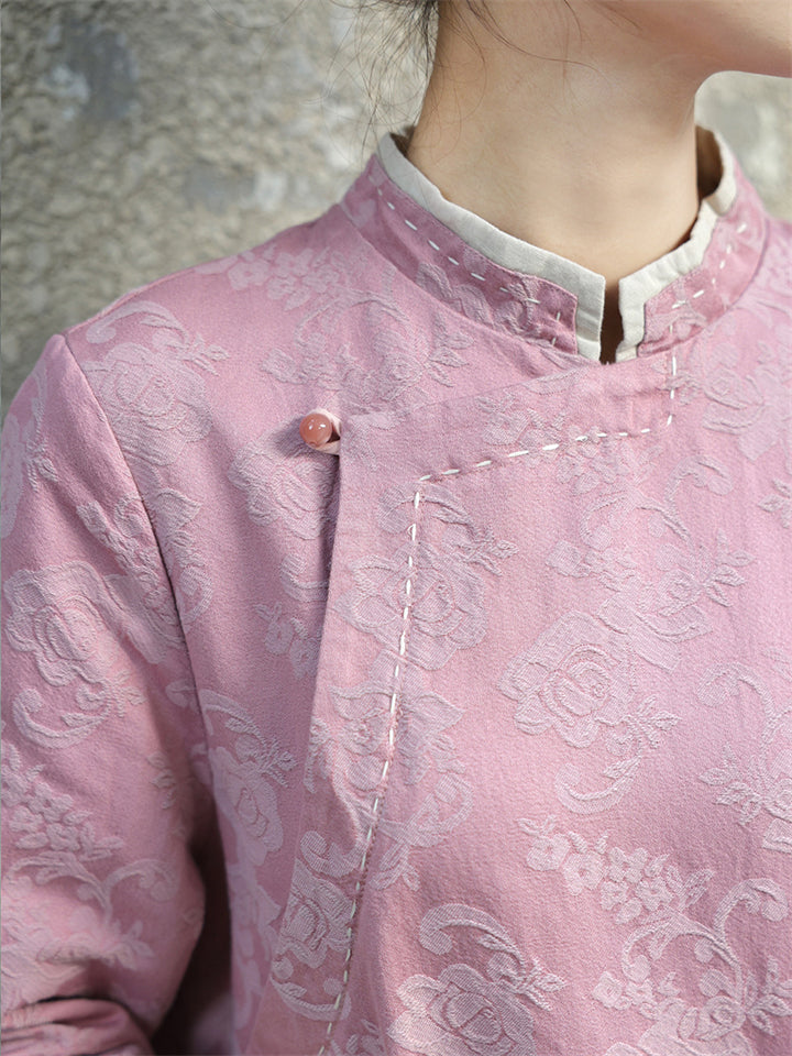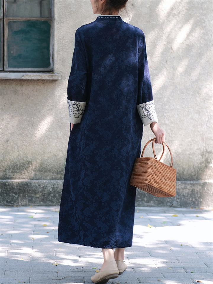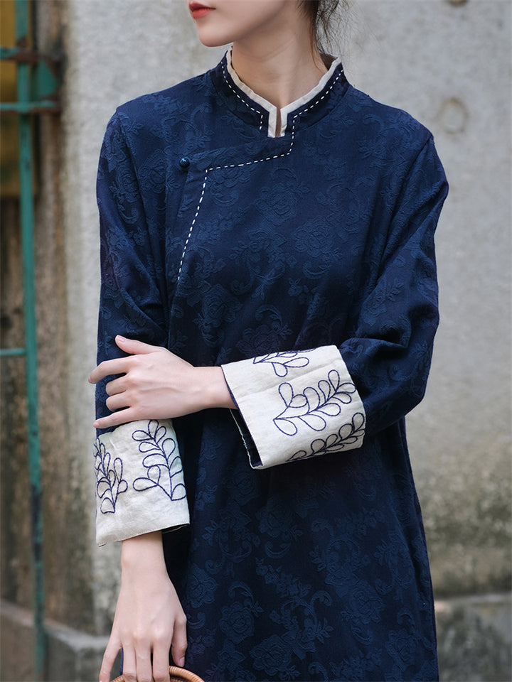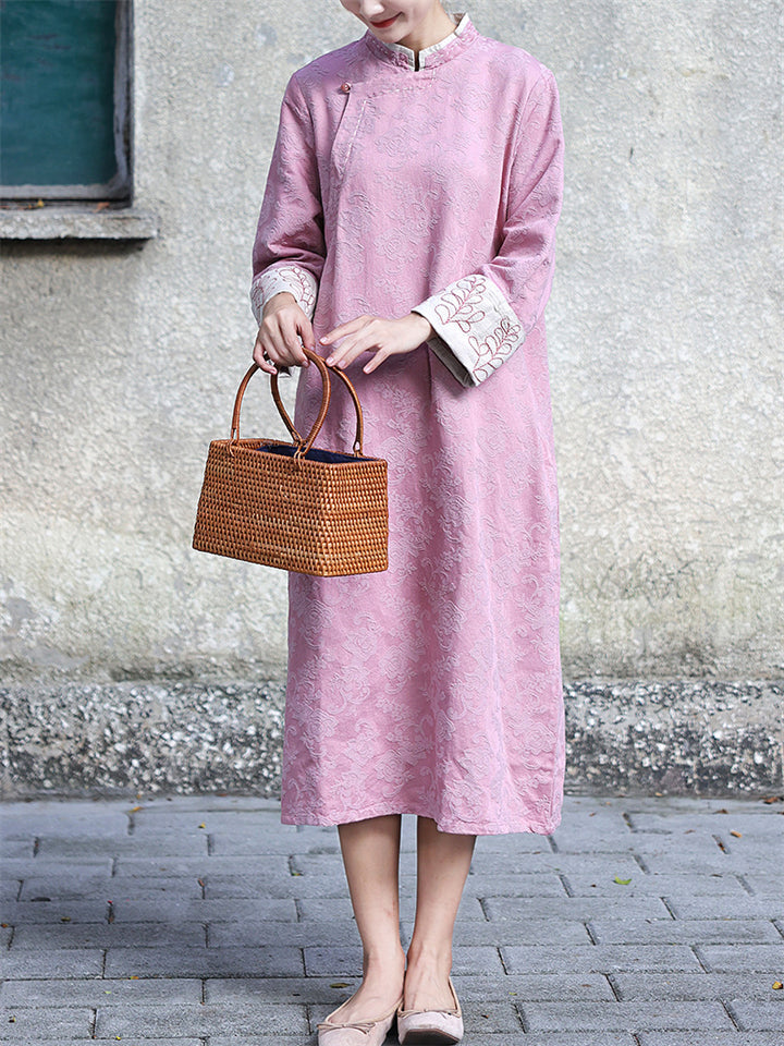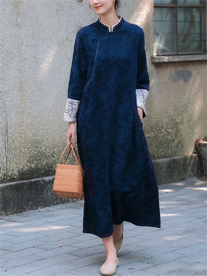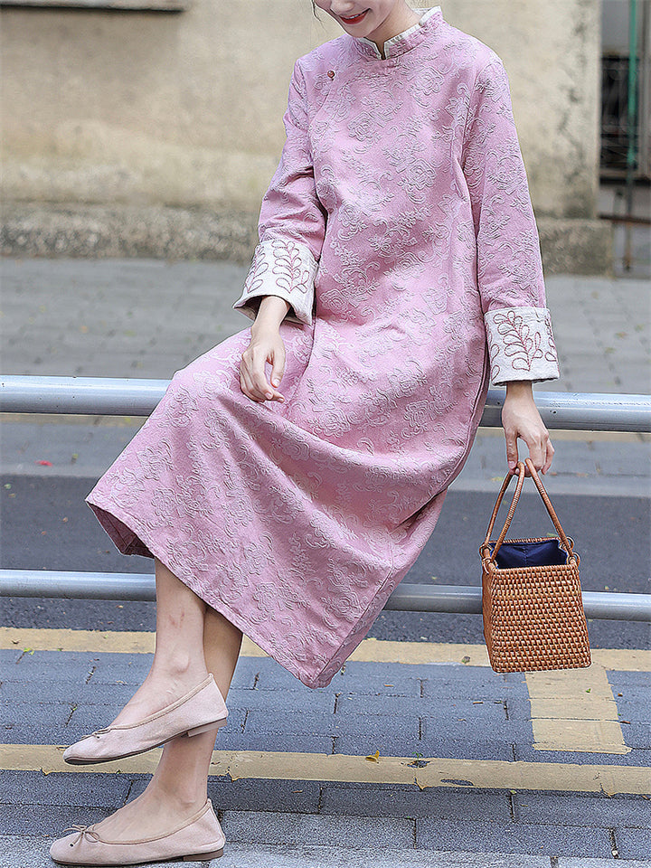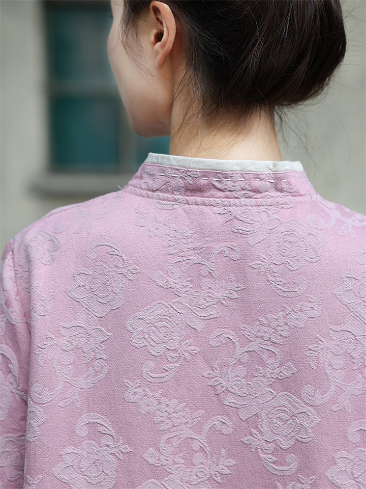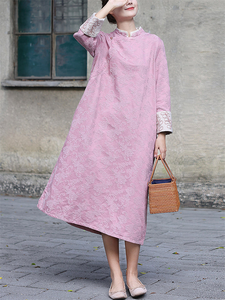 Women's Ramie Cotton Beaded Button Jacquard Dress