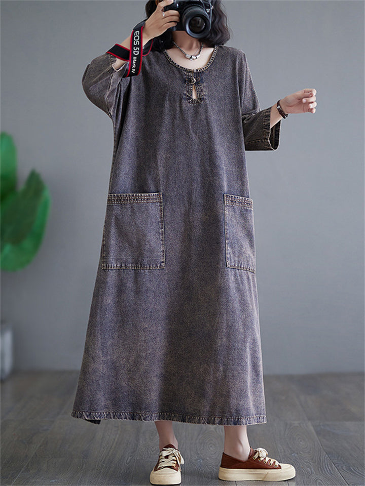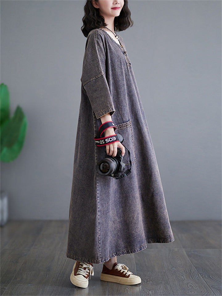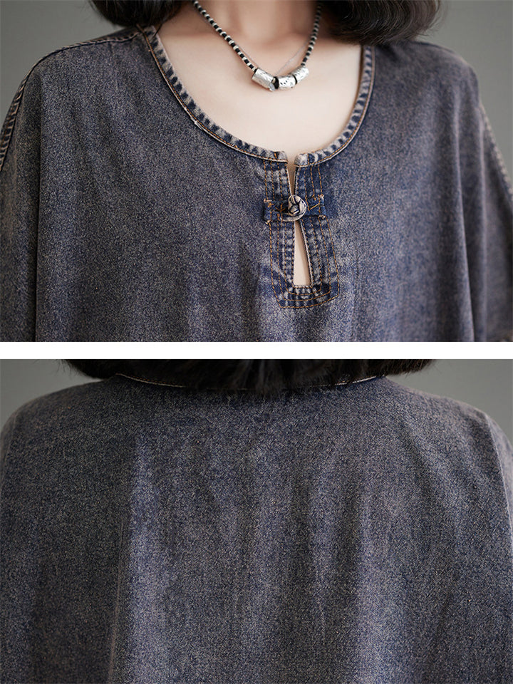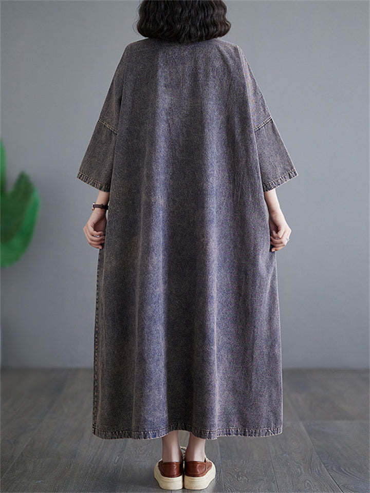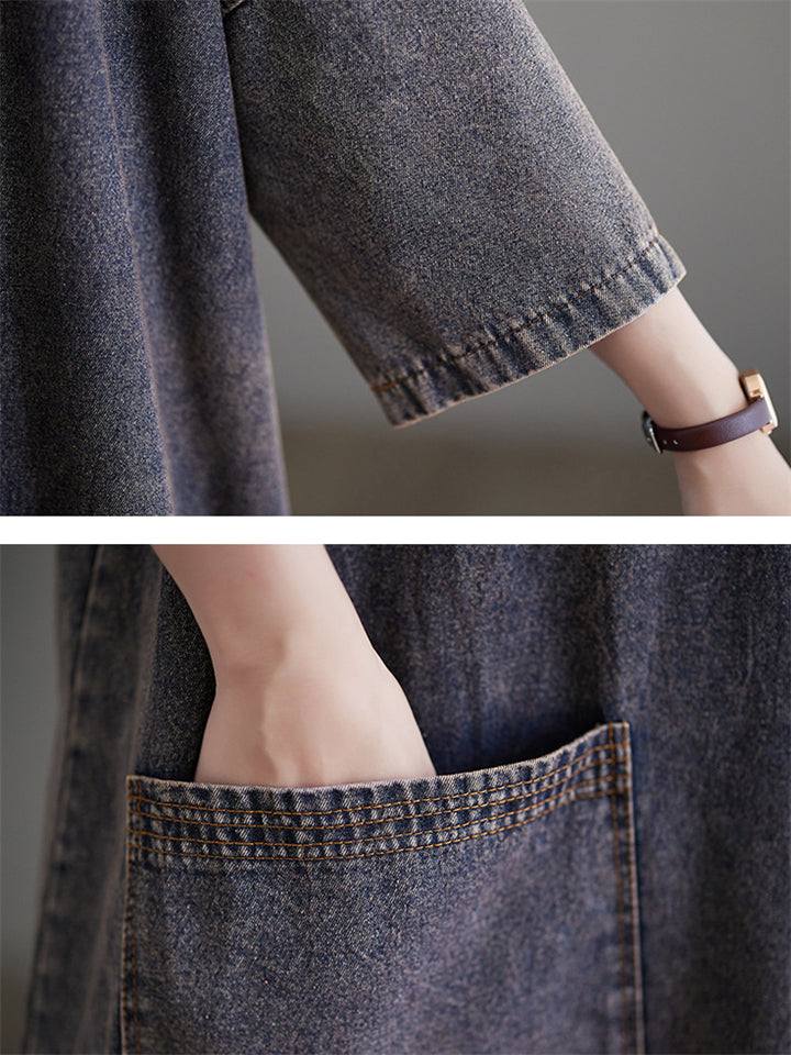 Women's Retro Super Loose Large Size Washed Denim Dress