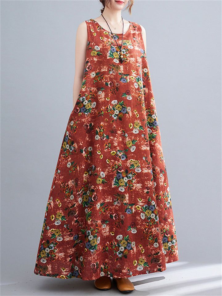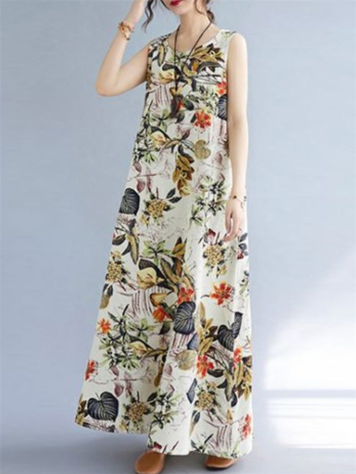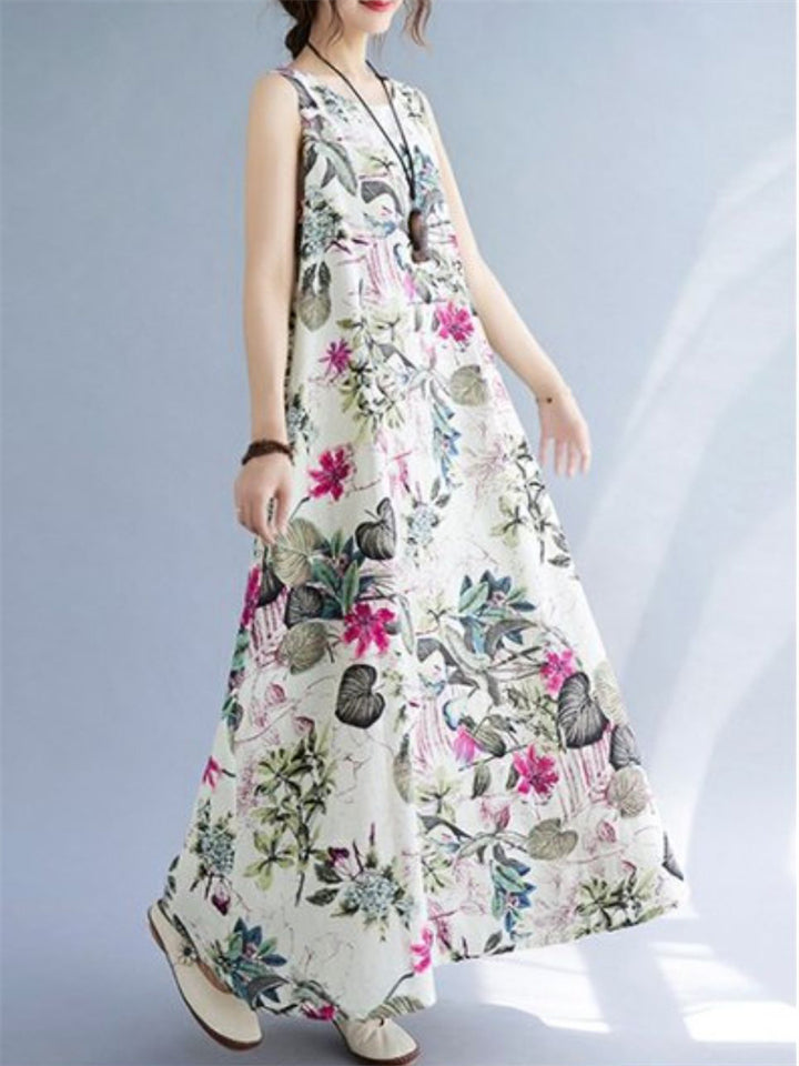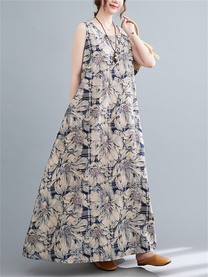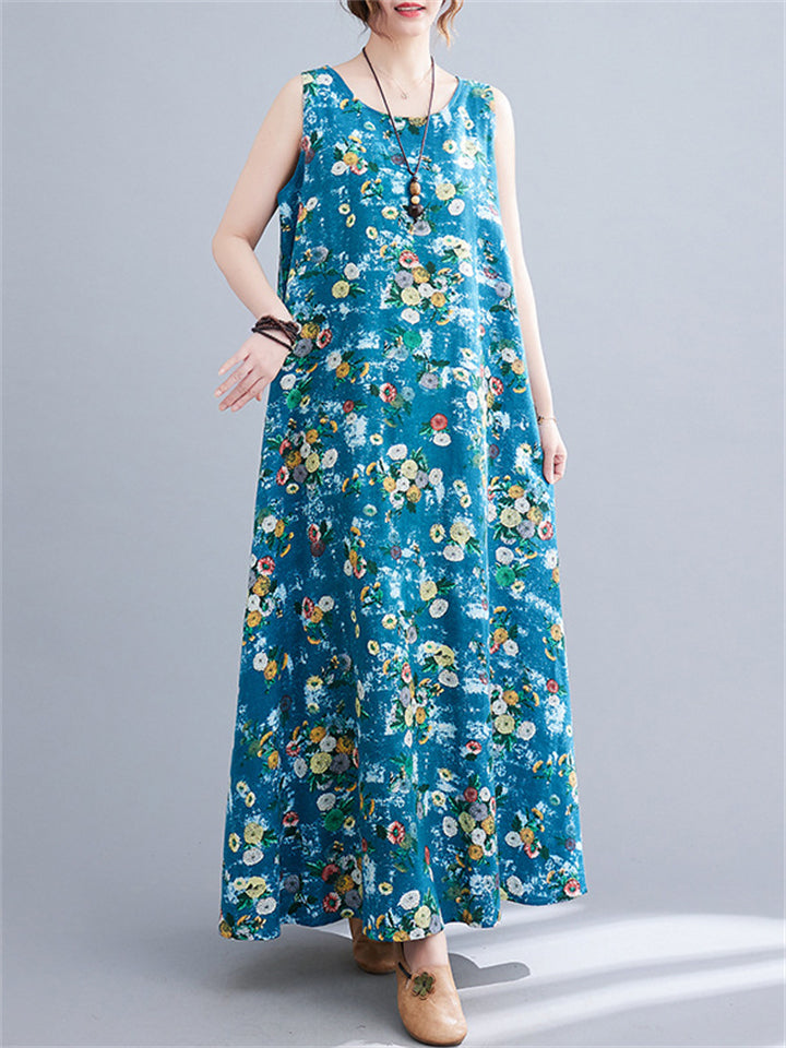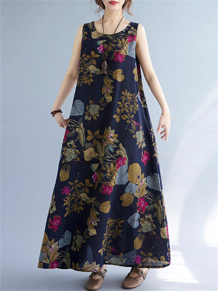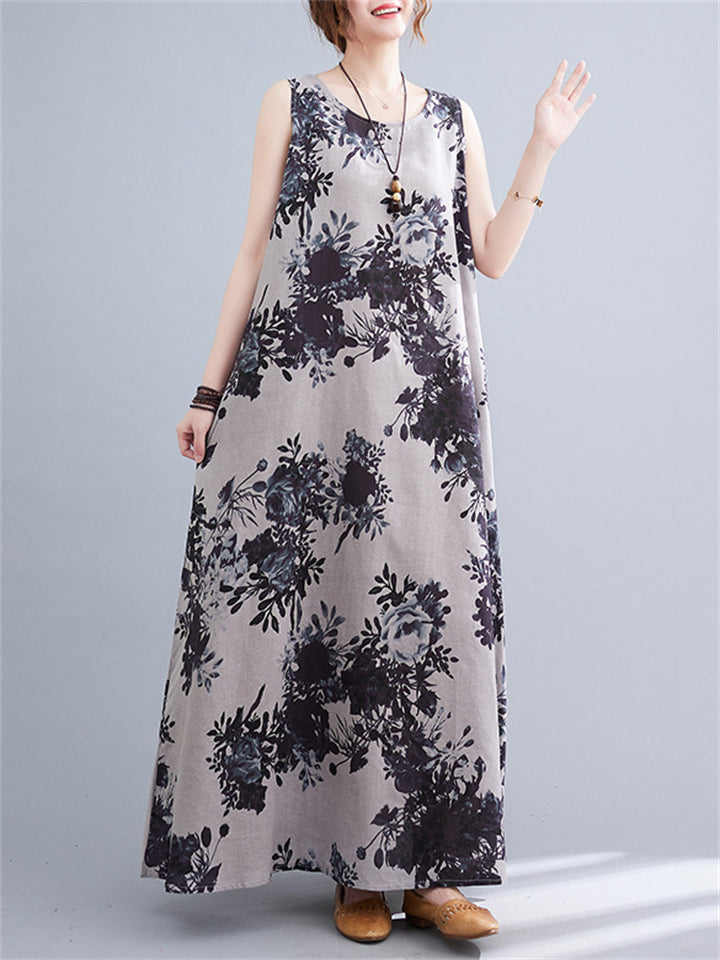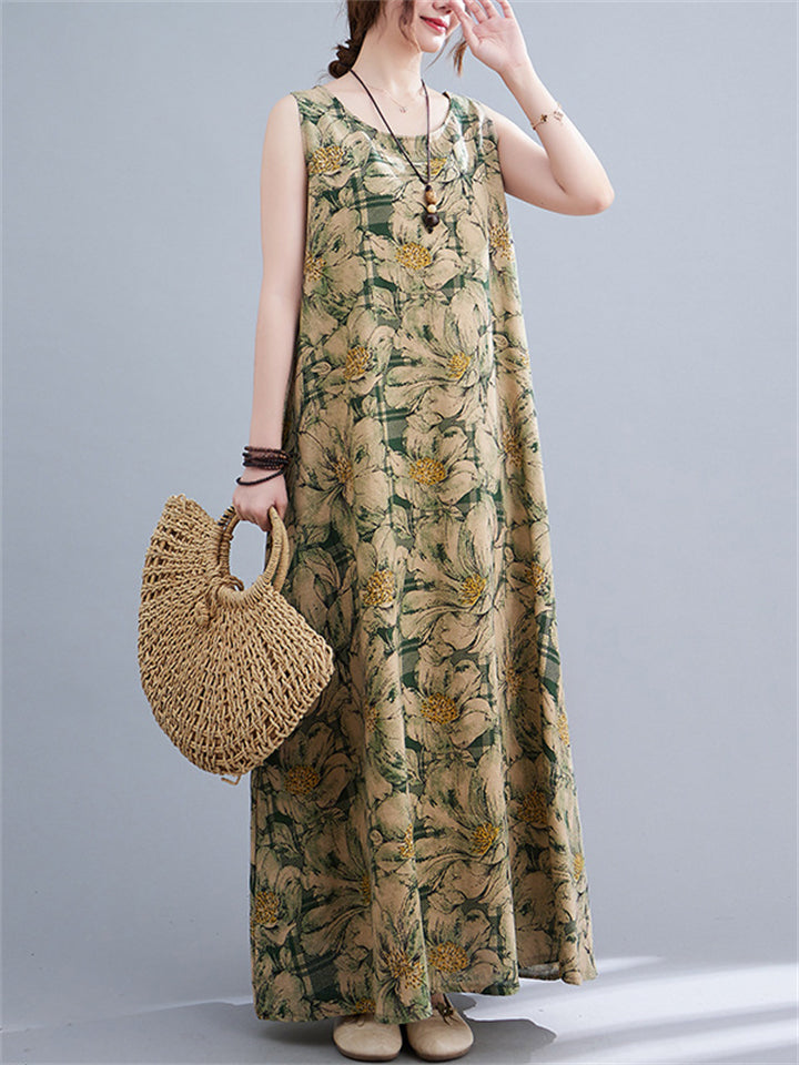 Women's Sleeveless Floral Linen Dresses