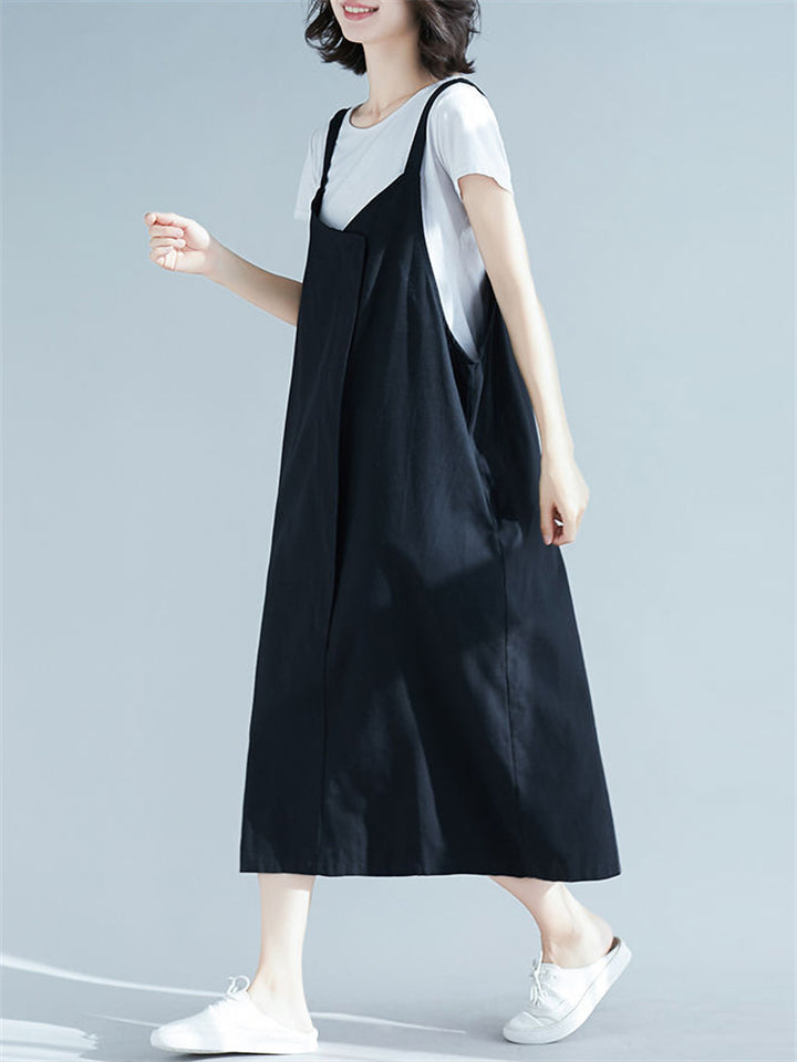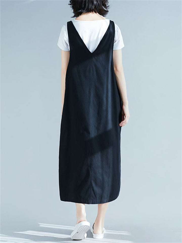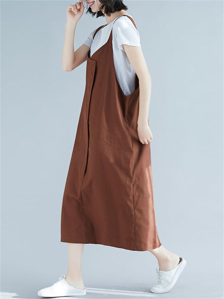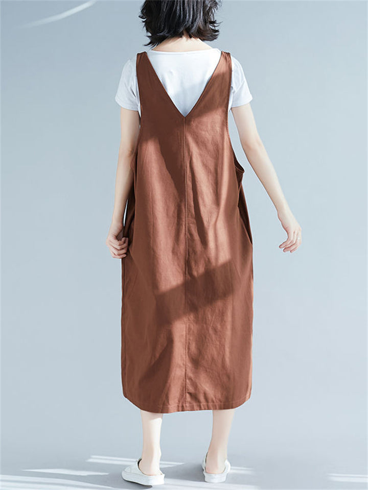 Women's Solid Color Round Neck Pockets Corduroy Vest Dress