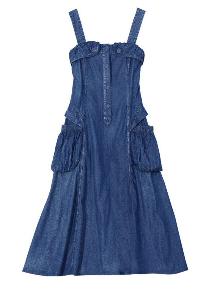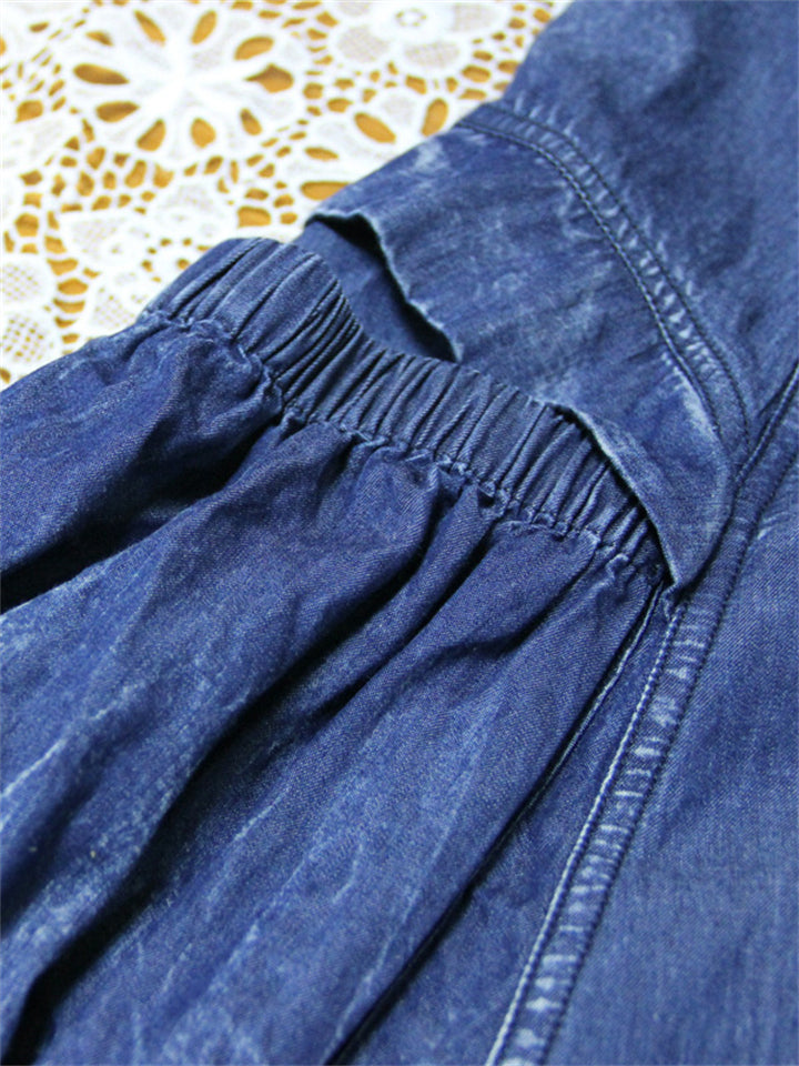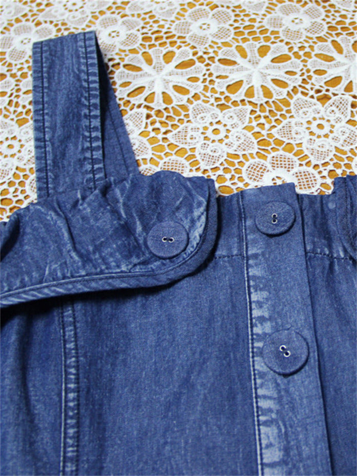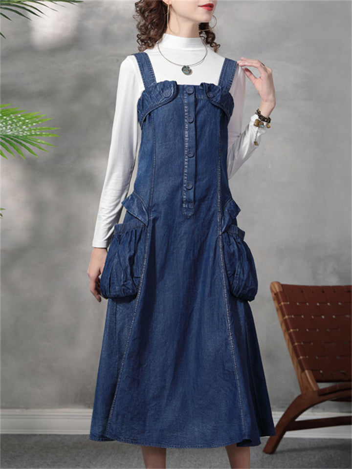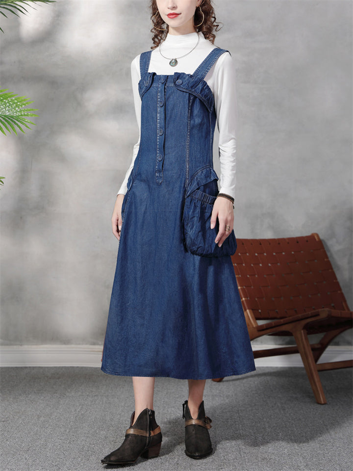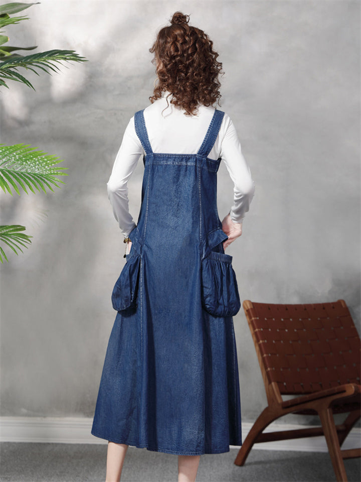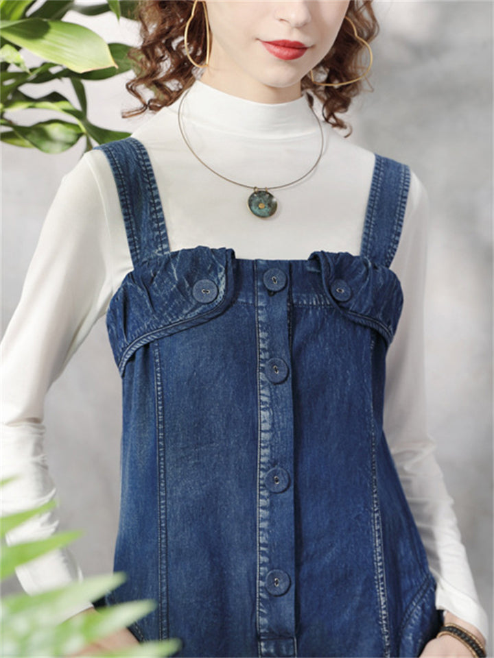 Women's Stylish Blue Denim A-Line Dungaree Dress