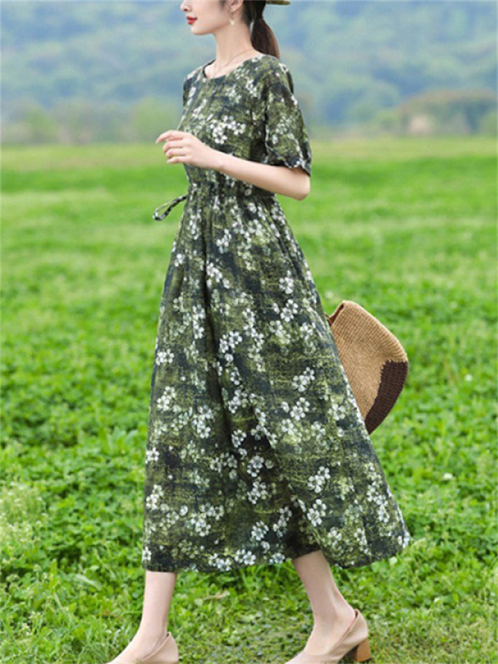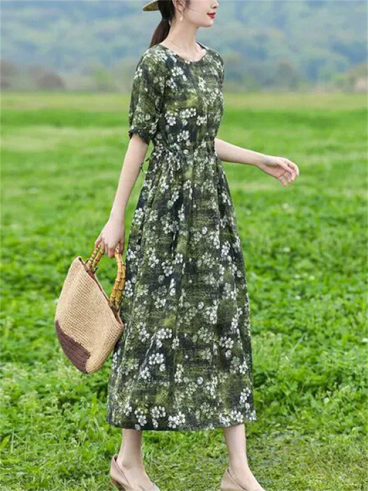 Women's Summer Classy Literary Lace-up Floral Dresses