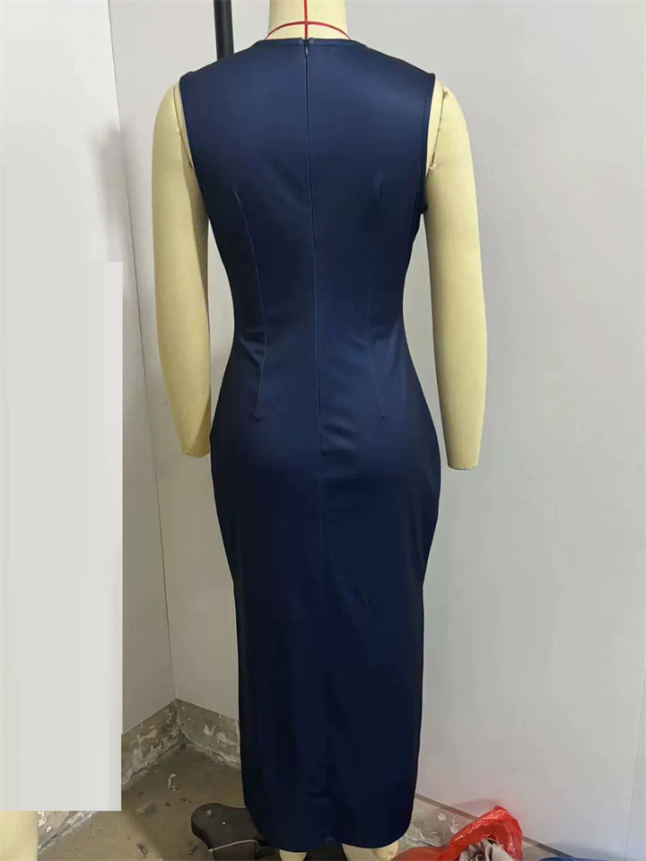 Women's Summer Elegant Patchwork Round Neck Sleeveless Dress
