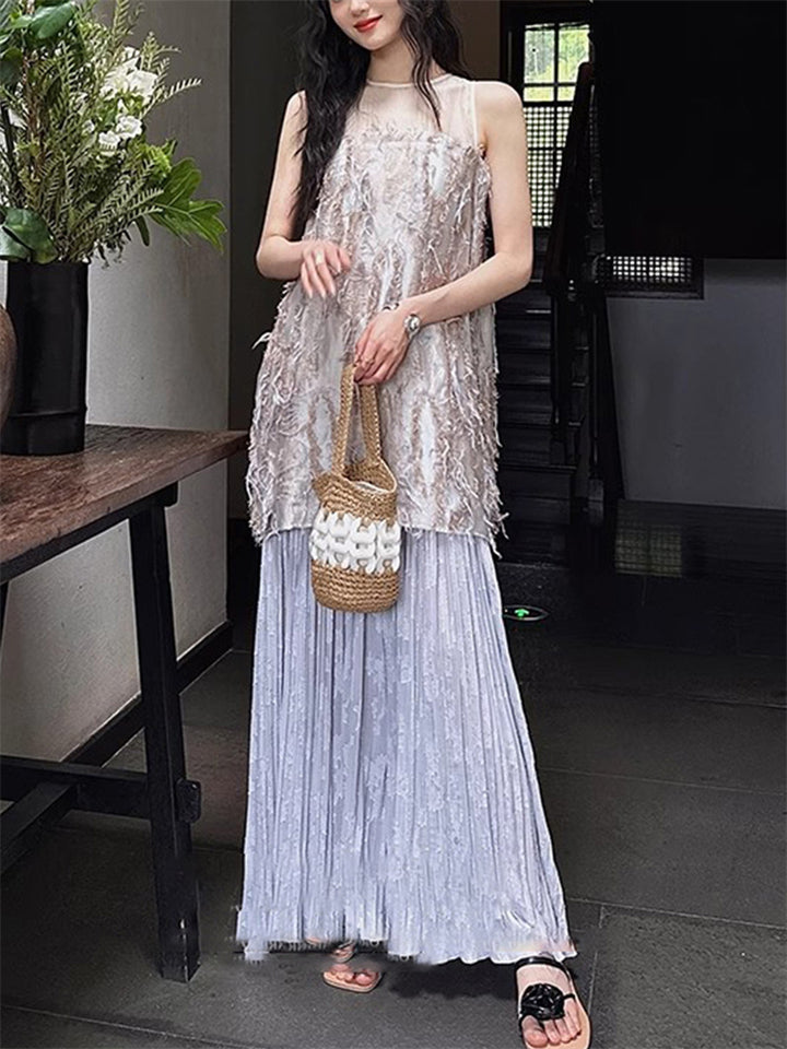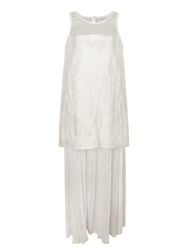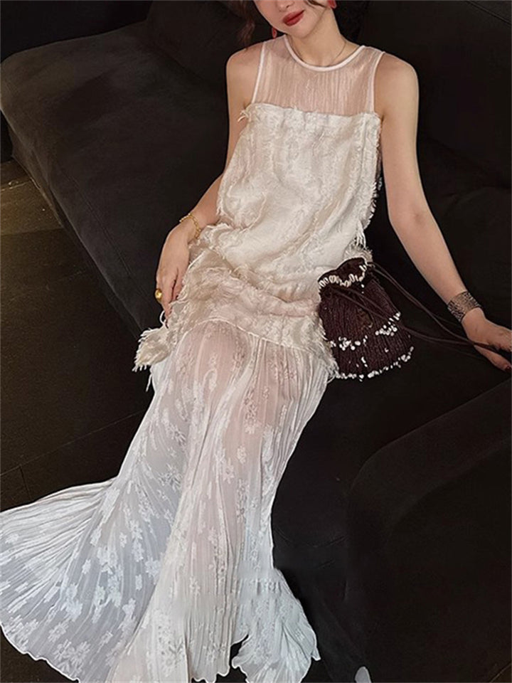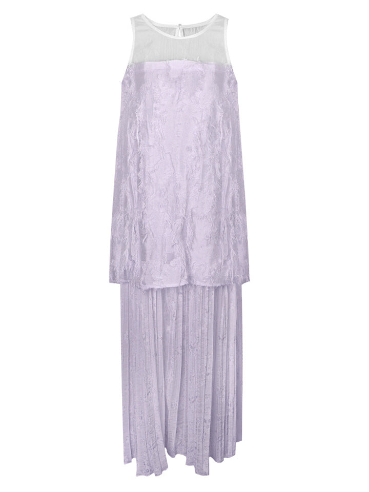 Women's Elegant Solid Color Hollow Patchwork Sleeveless Dress