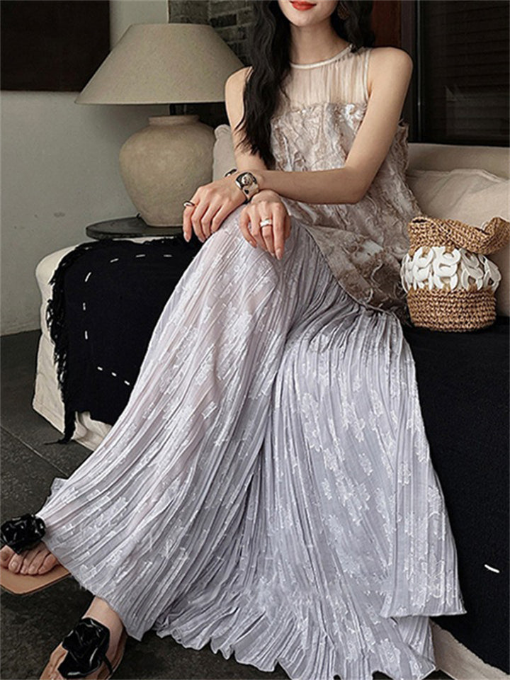 Women's Oriental Style Elegant Print Patchwork Sleeveless Dress