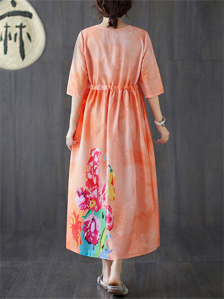 Women's Summer Printed Patchwork Half Sleeve Big Hem Maxi Dress