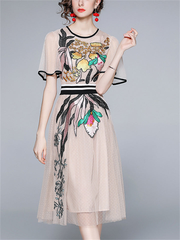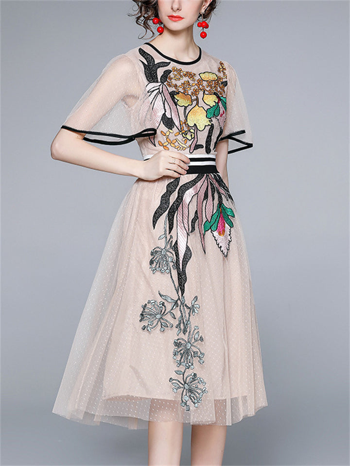 Women's Summer Printed Patchwork Half Sleeve Big Hem Maxi Dress