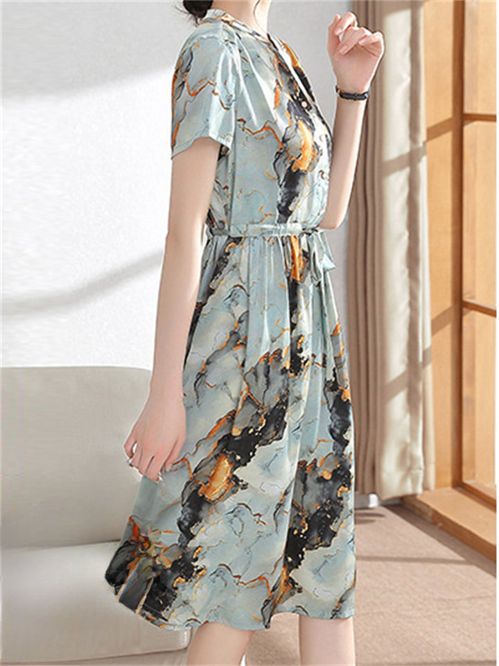 Women's Summer Print Short Sleeve Tie-waist Dress