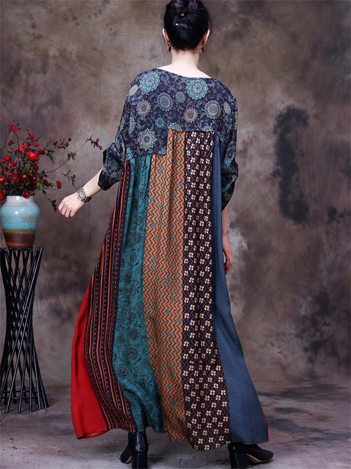 Women's Summer Printed Patchwork Half Sleeve Big Hem Maxi Dress