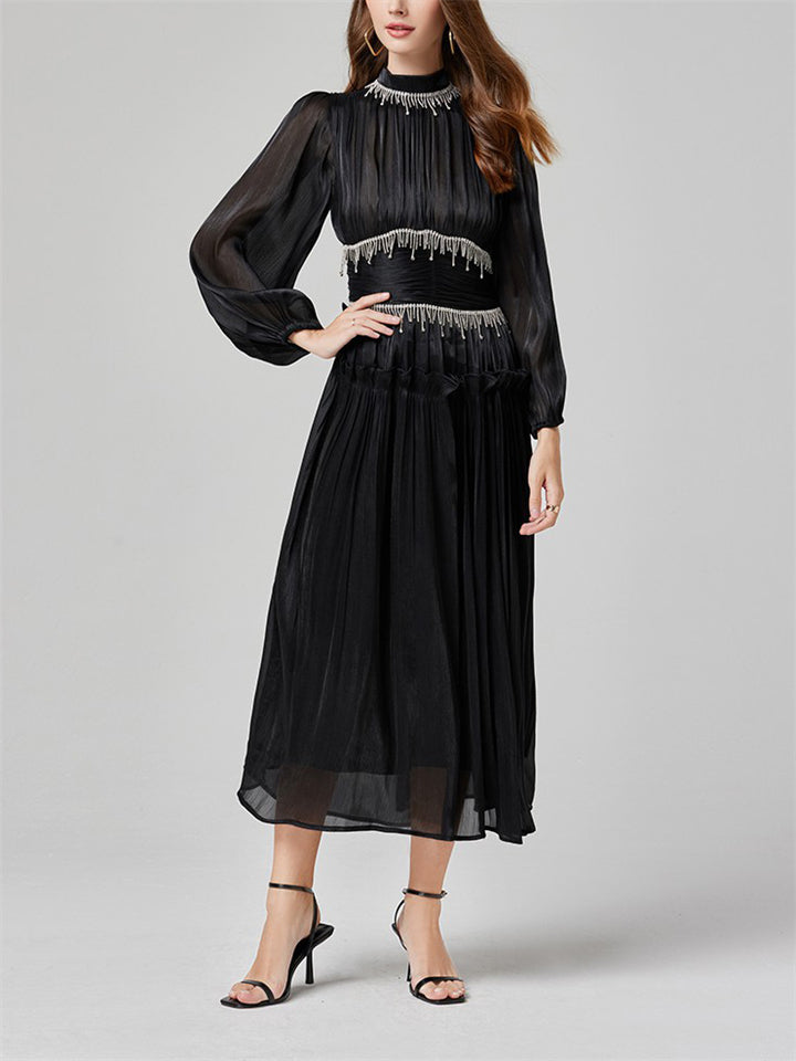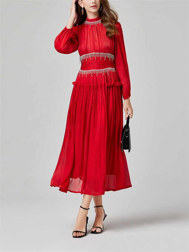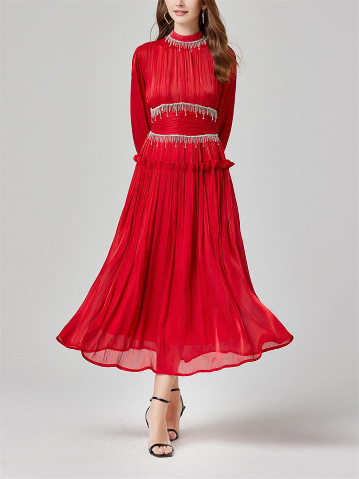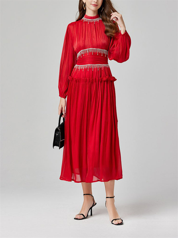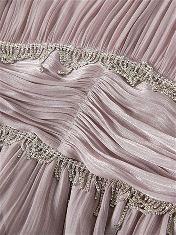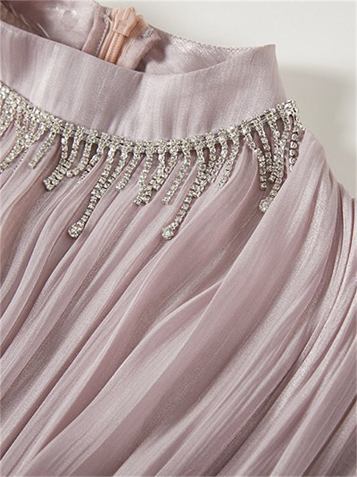 Women's Tassel Rhinestone Embellished Pleated Waisted Dress