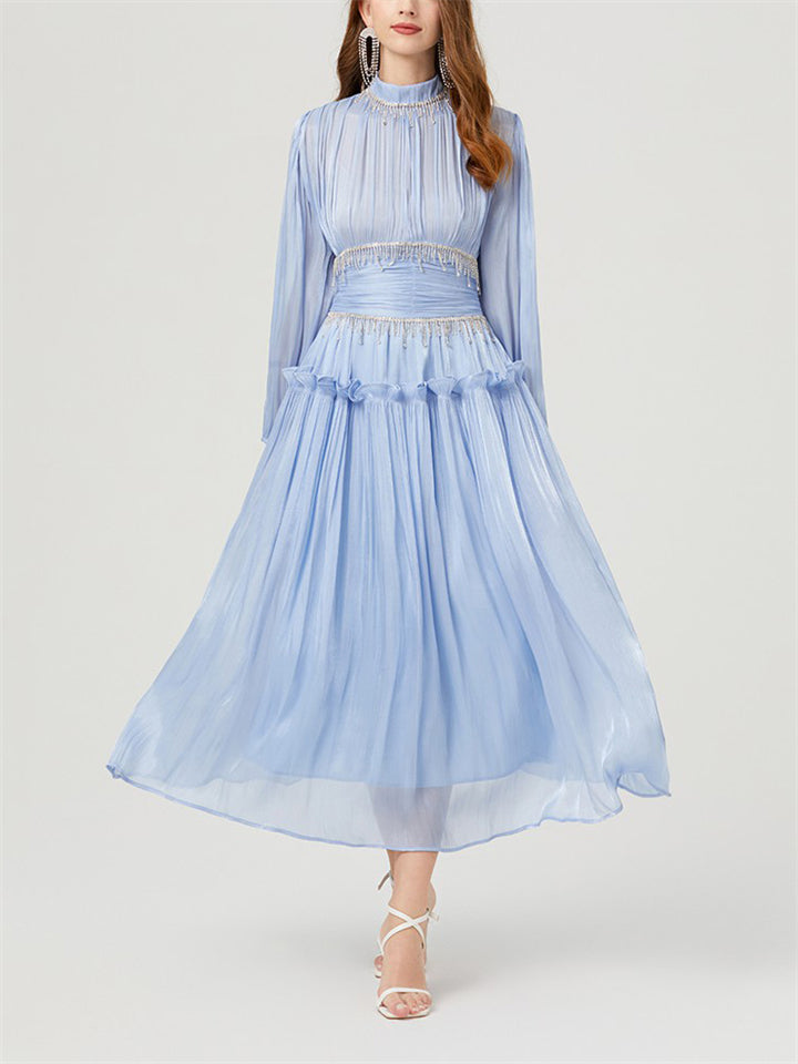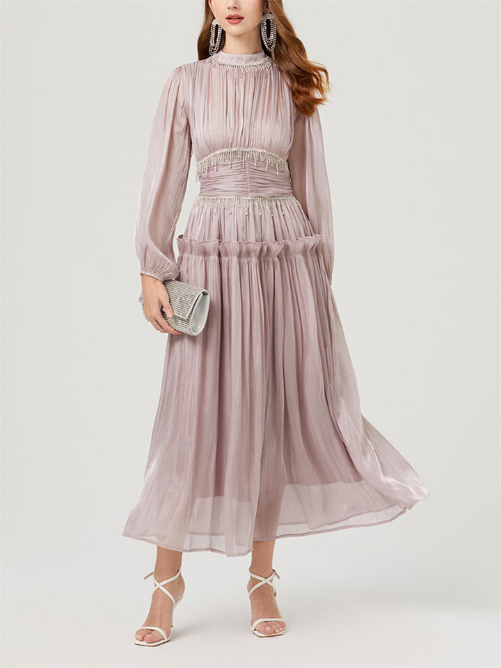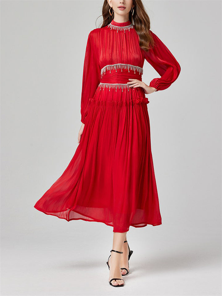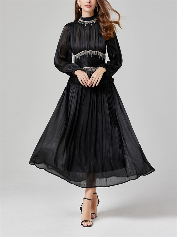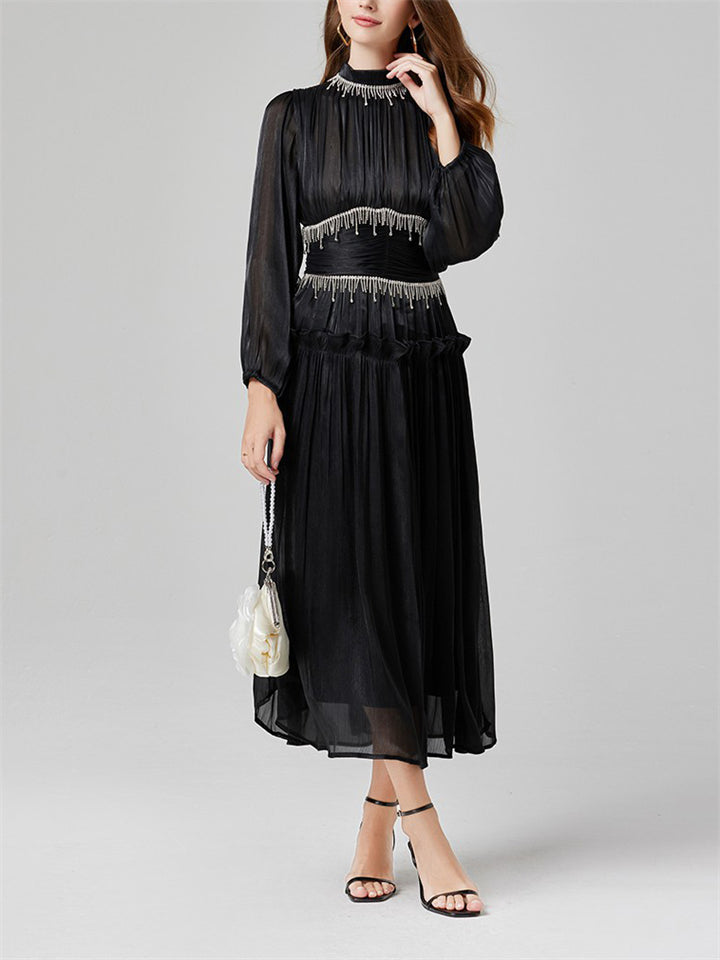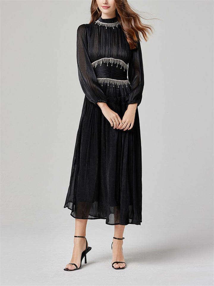 Women's Tassel Rhinestone Embellished Pleated Waisted Dress