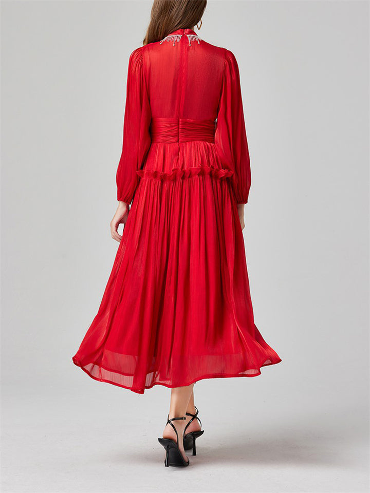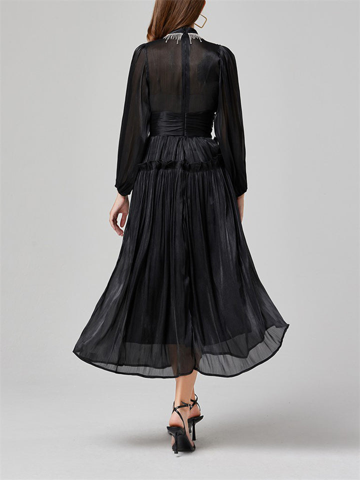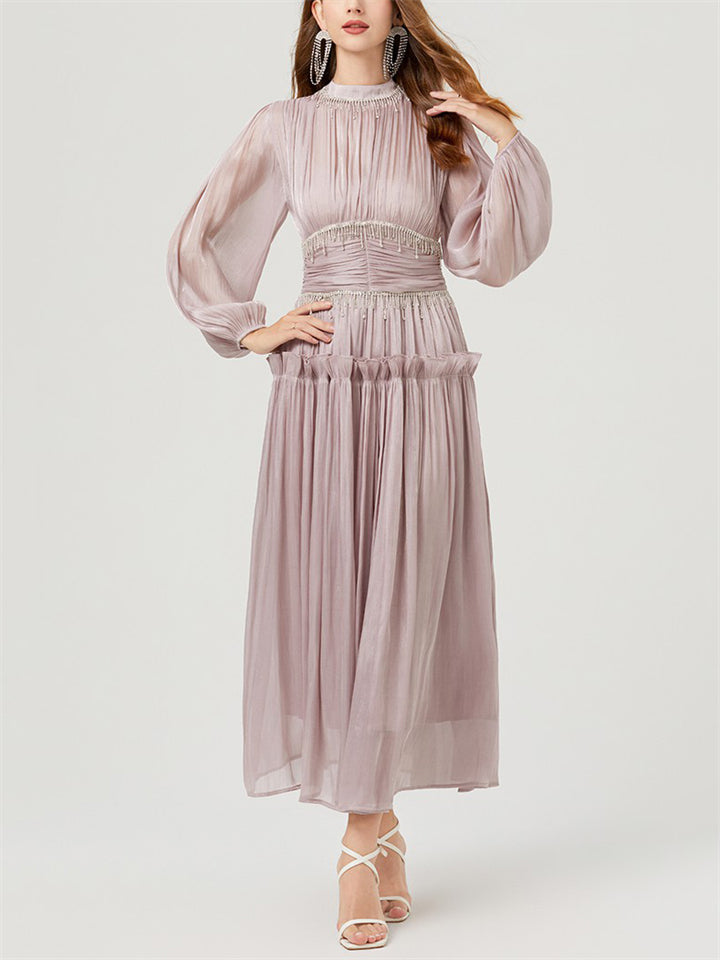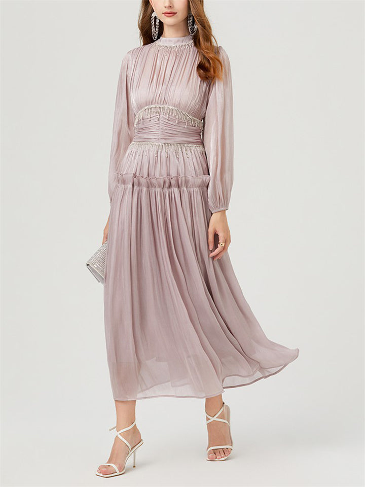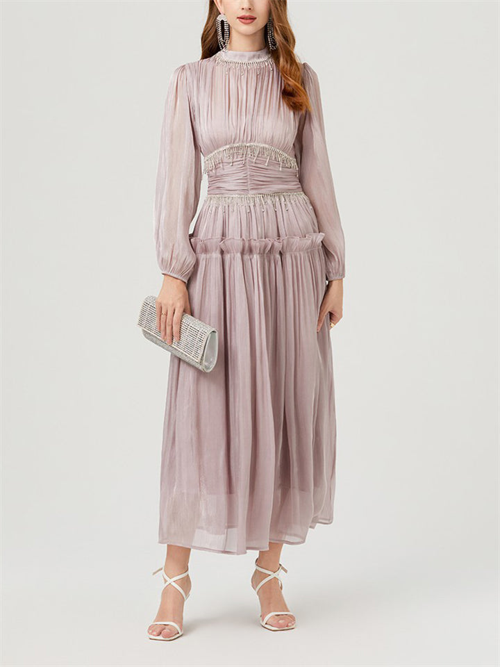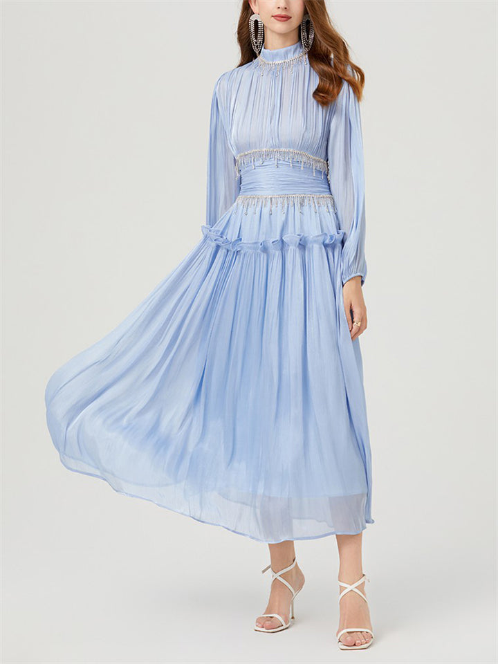 Women's Tassel Rhinestone Embellished Pleated Waisted Dress