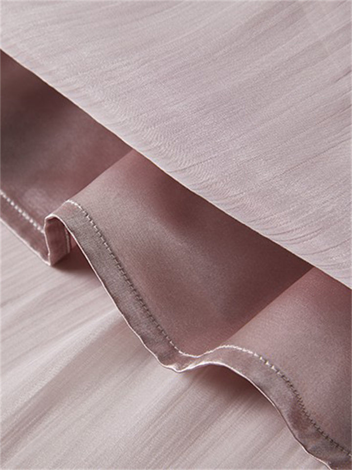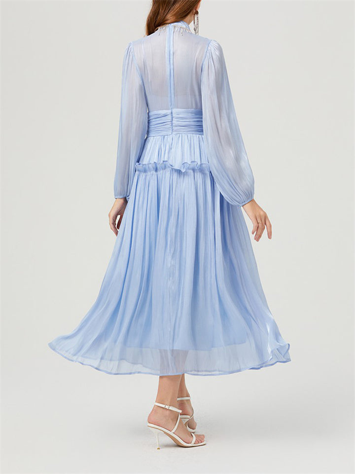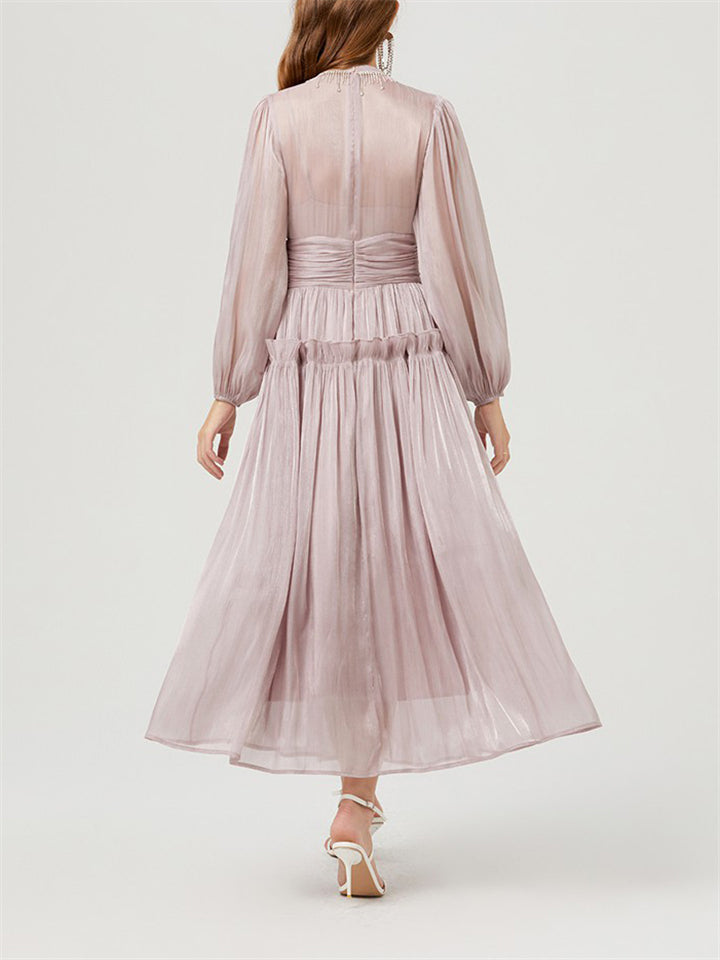 Women's Casual Solid Color Round Neck Double-layer Big Hem Midi Dress