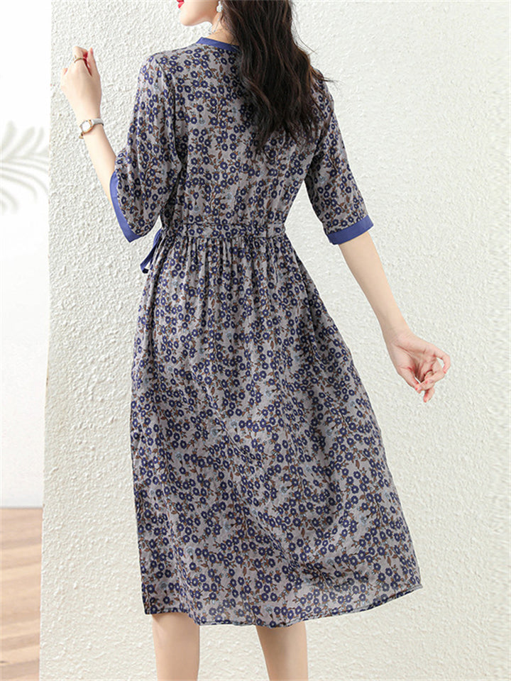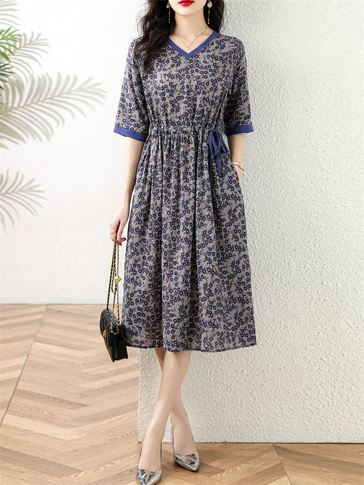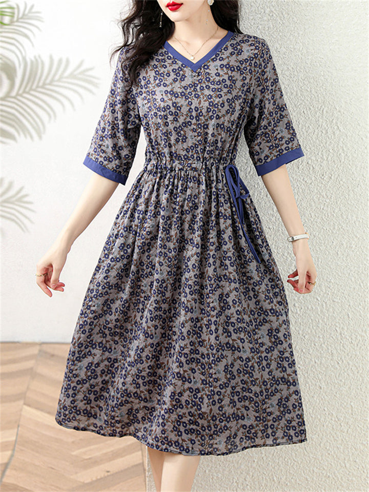 Women's V-Neck Half Sleeve Lace-Up Midi Dresses