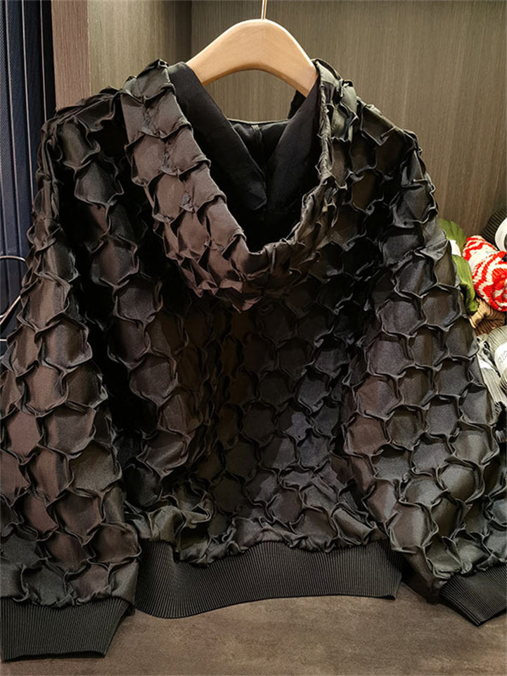 Women's Stylish Zip-Up 3D Textured Long Sleeve Hooded Jackets