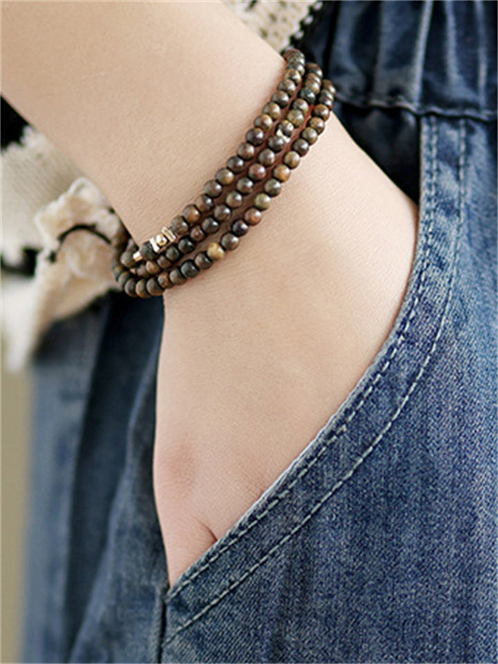 Women's Vintage Flower Embroidered Pockets Elastic Waist Jeans