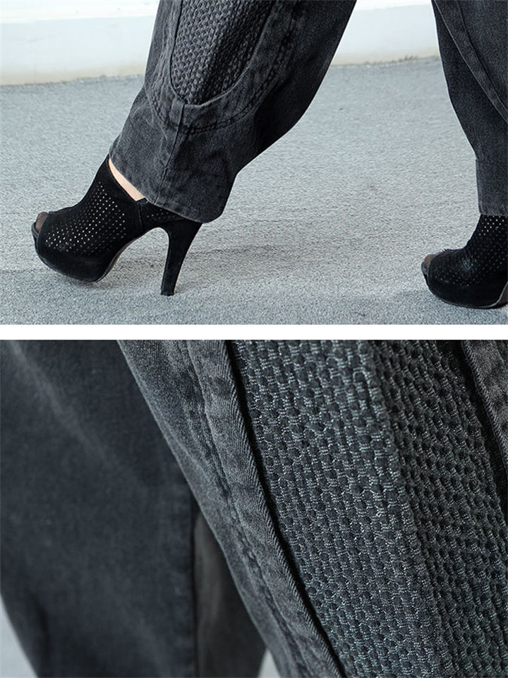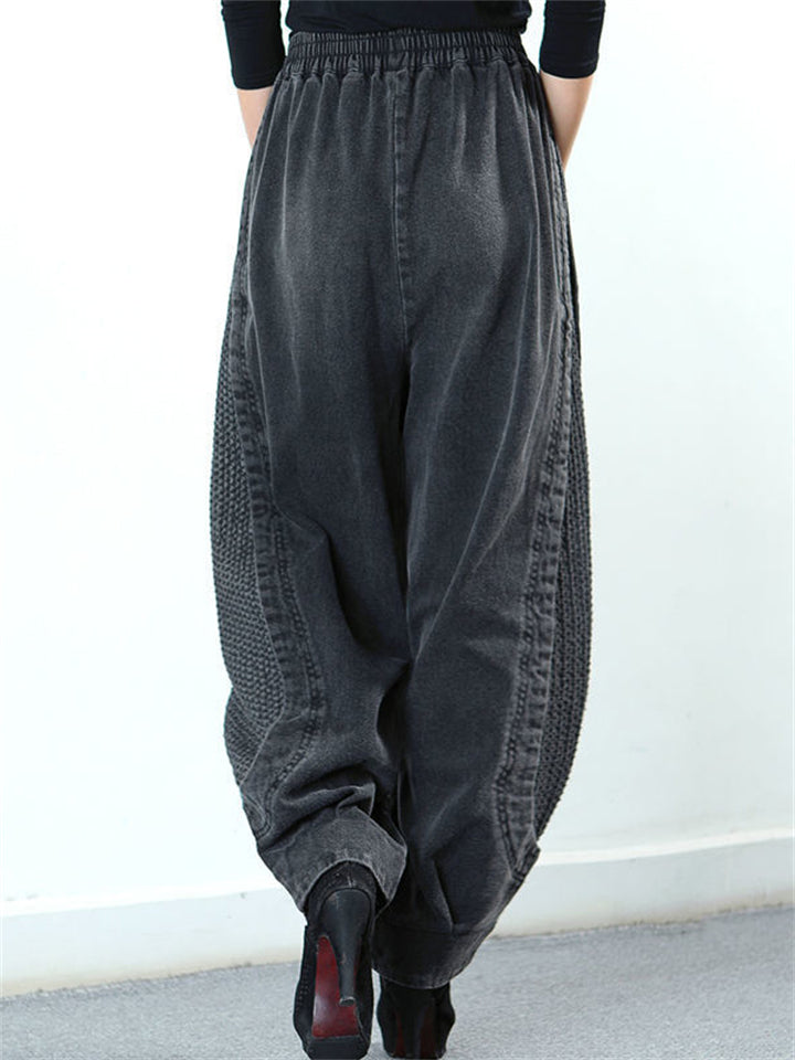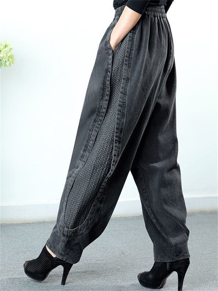 Women's Casual Solid Color Pockets Harem Denim Jeans