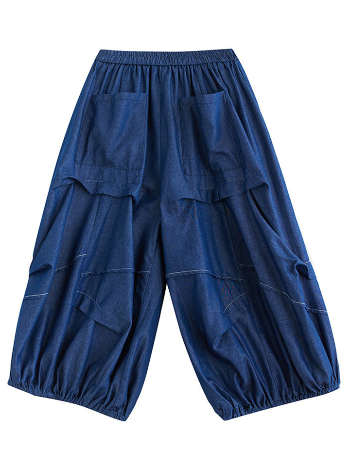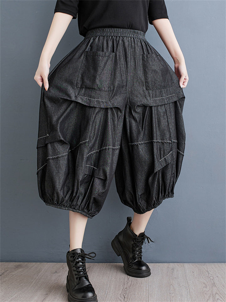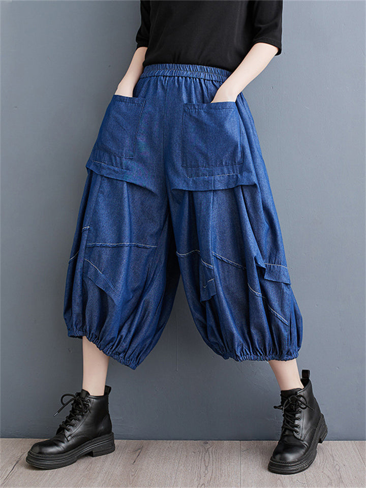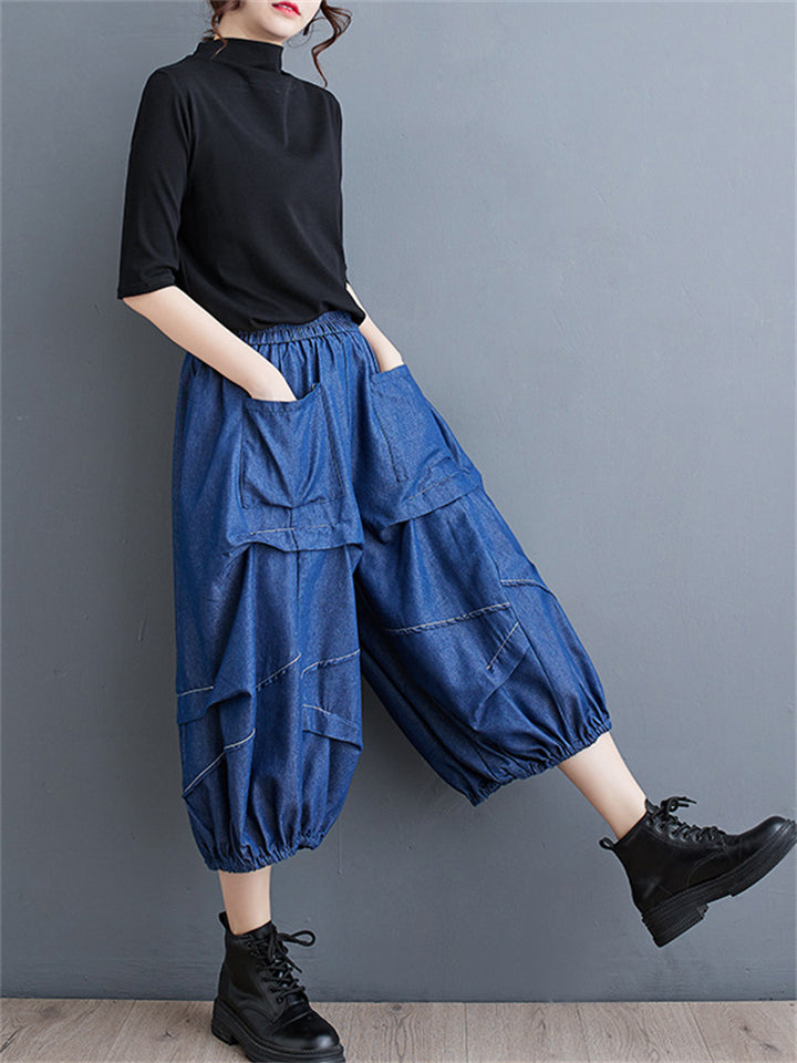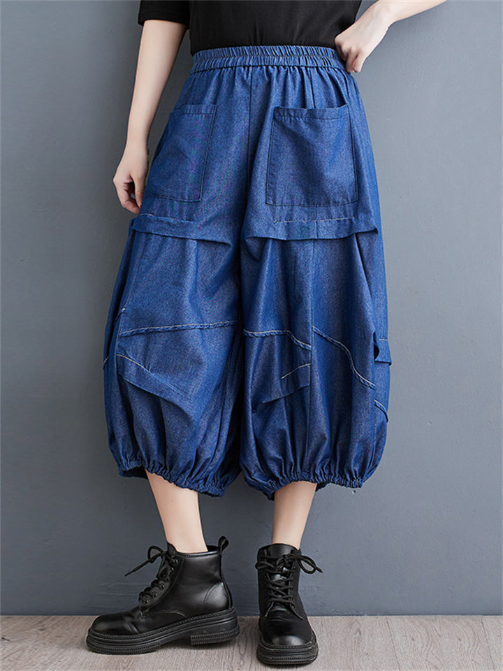 Irregular Pleated Casual Cropped Lantern Jeans for Women
