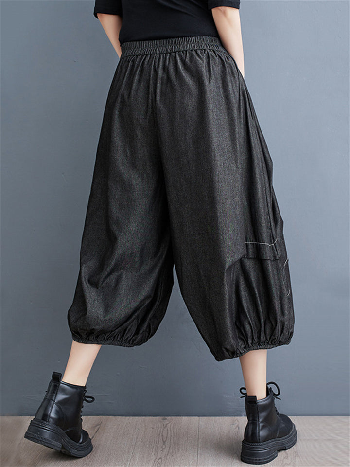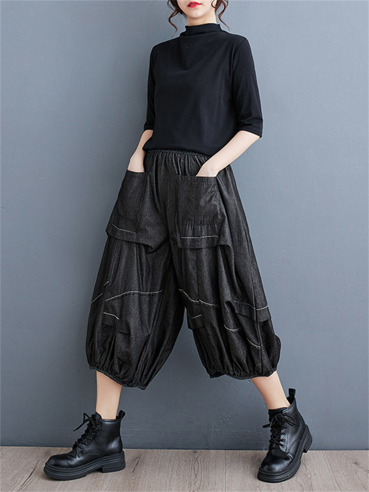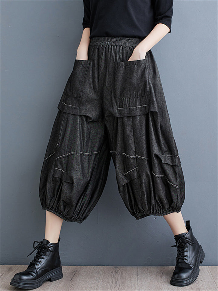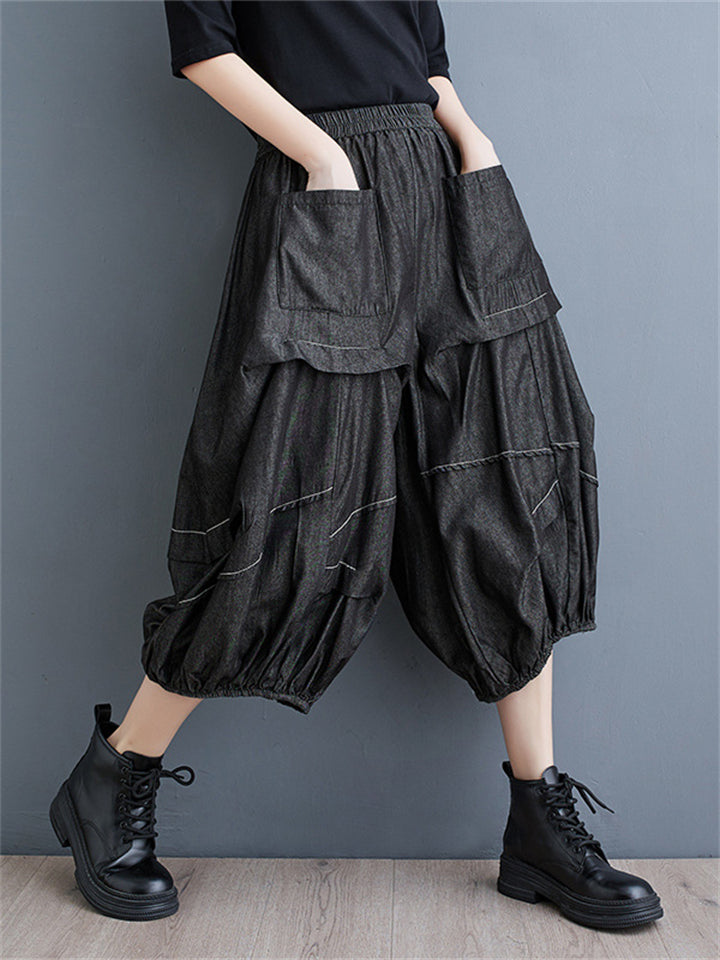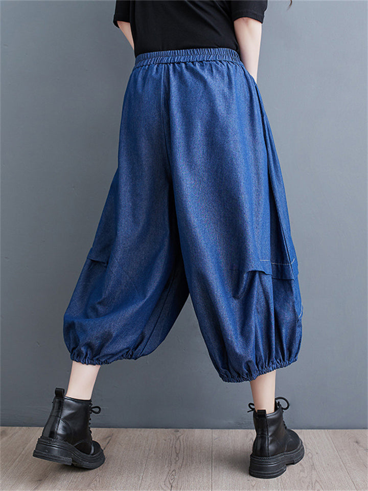 Irregular Pleated Casual Cropped Lantern Jeans for Women