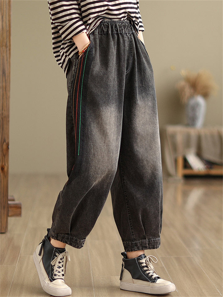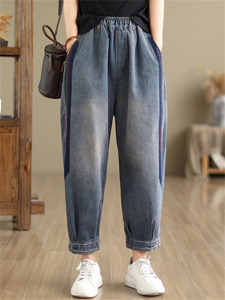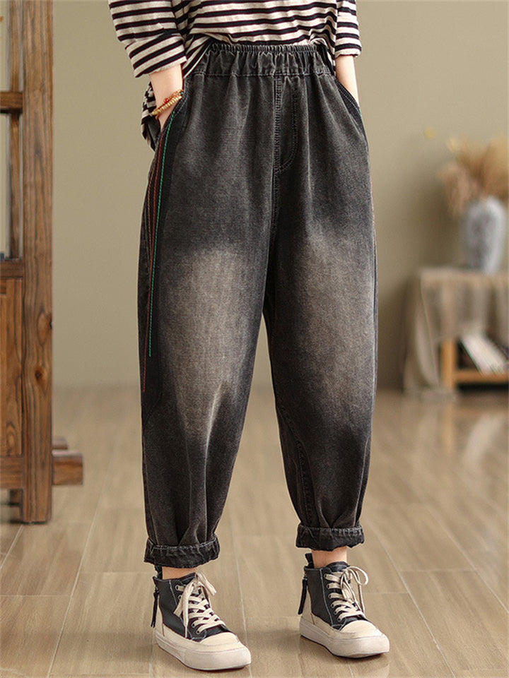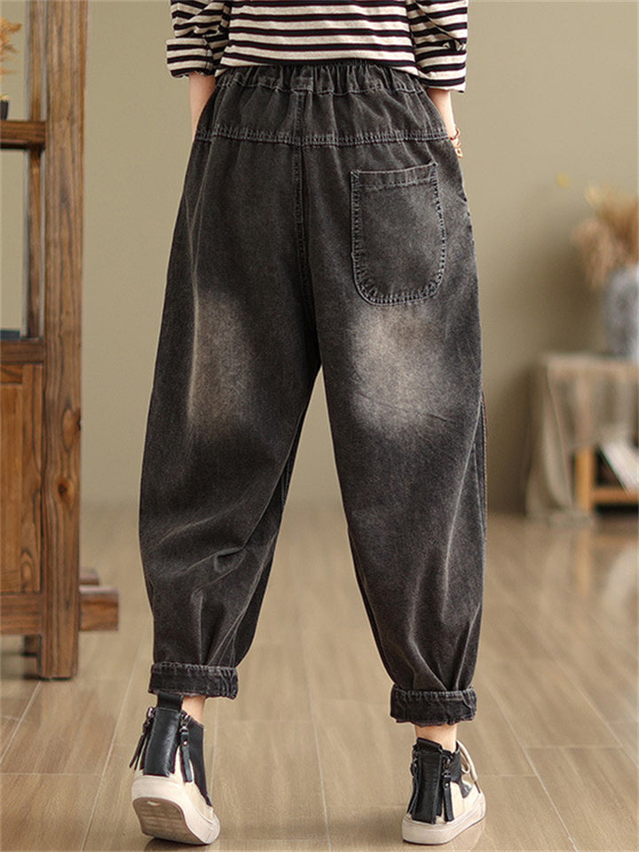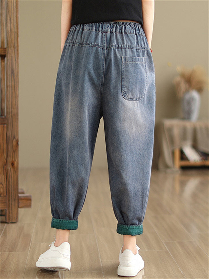 Women's Casual Solid Color Pockets Harem Denim Jeans