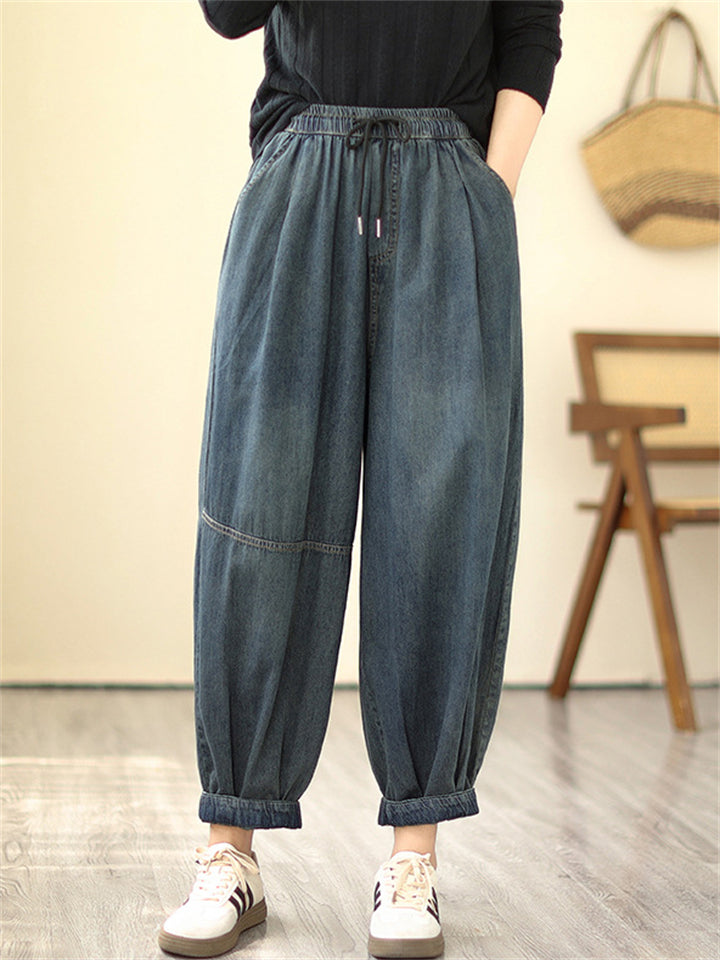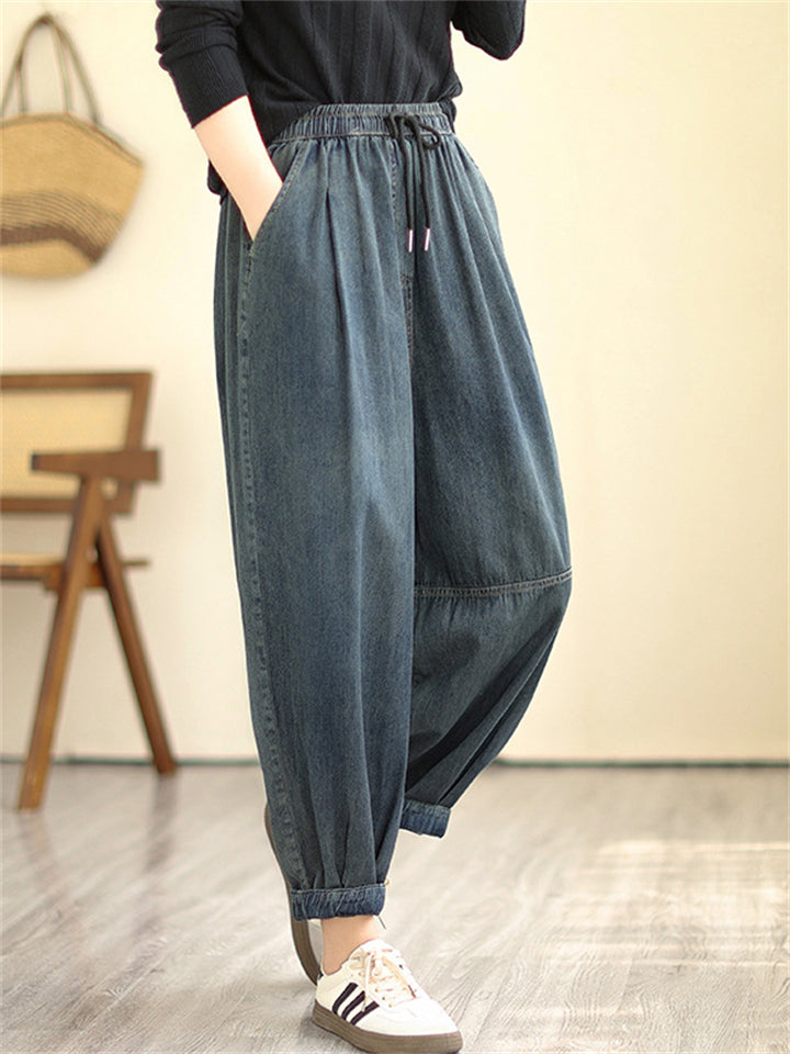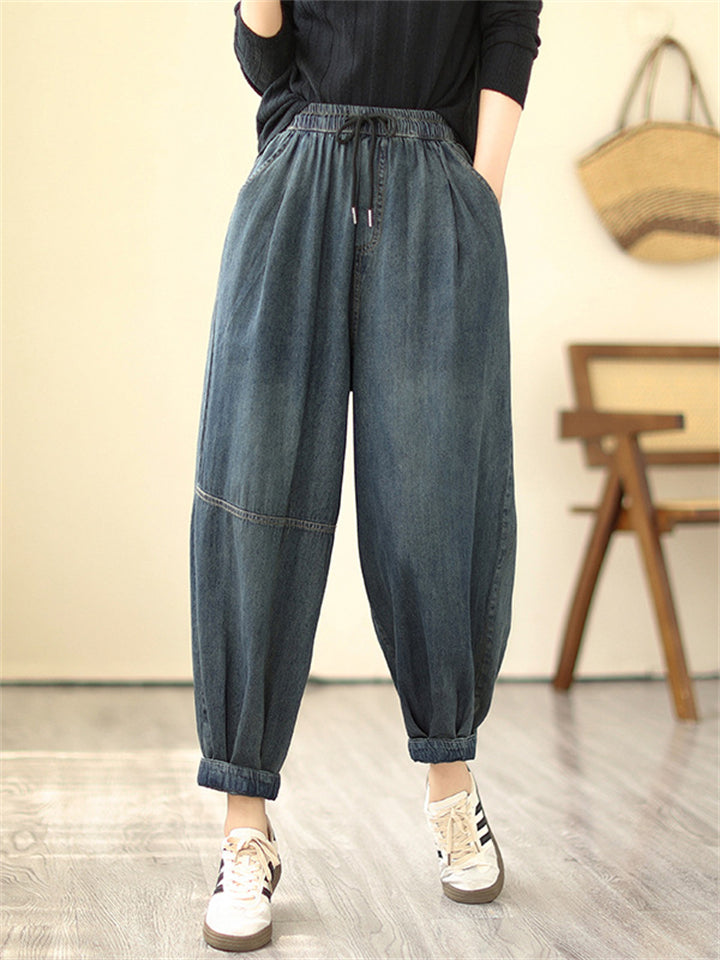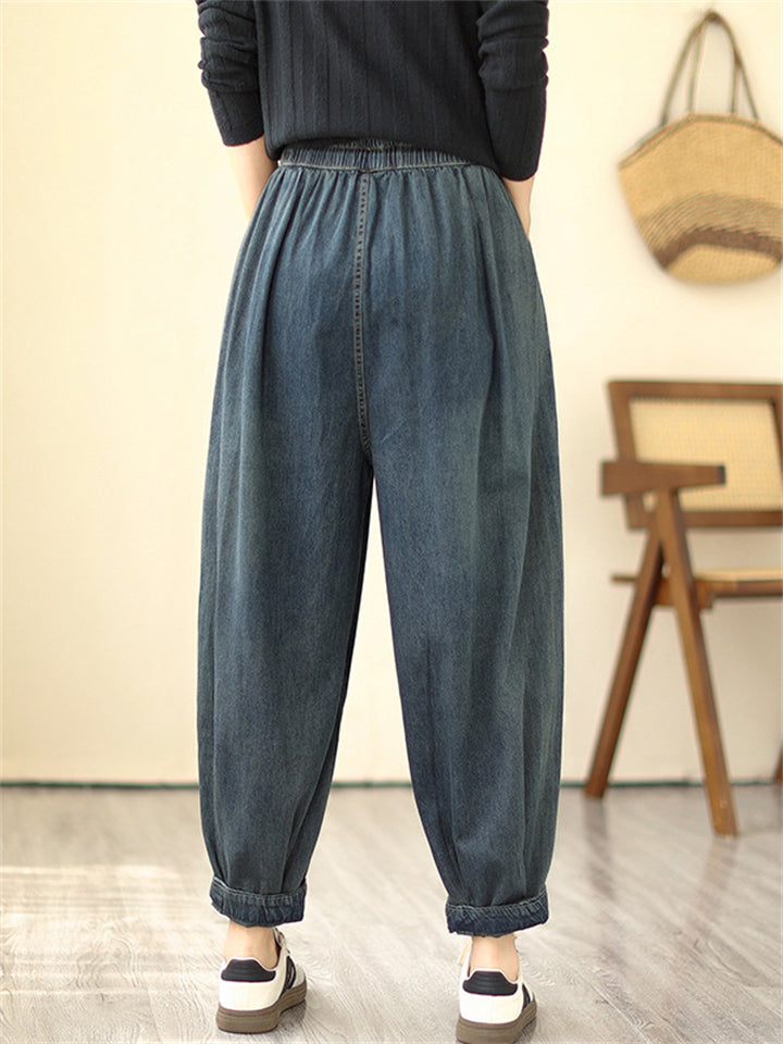 Women's Casual Solid Color Pockets Harem Denim Jeans