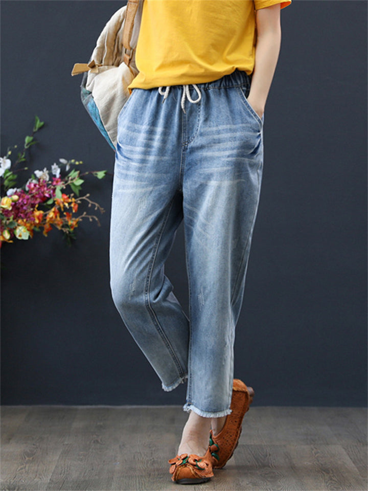 Women's Casual Solid Color Pockets Harem Denim Jeans
