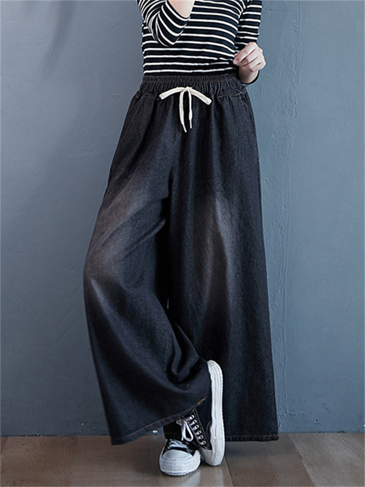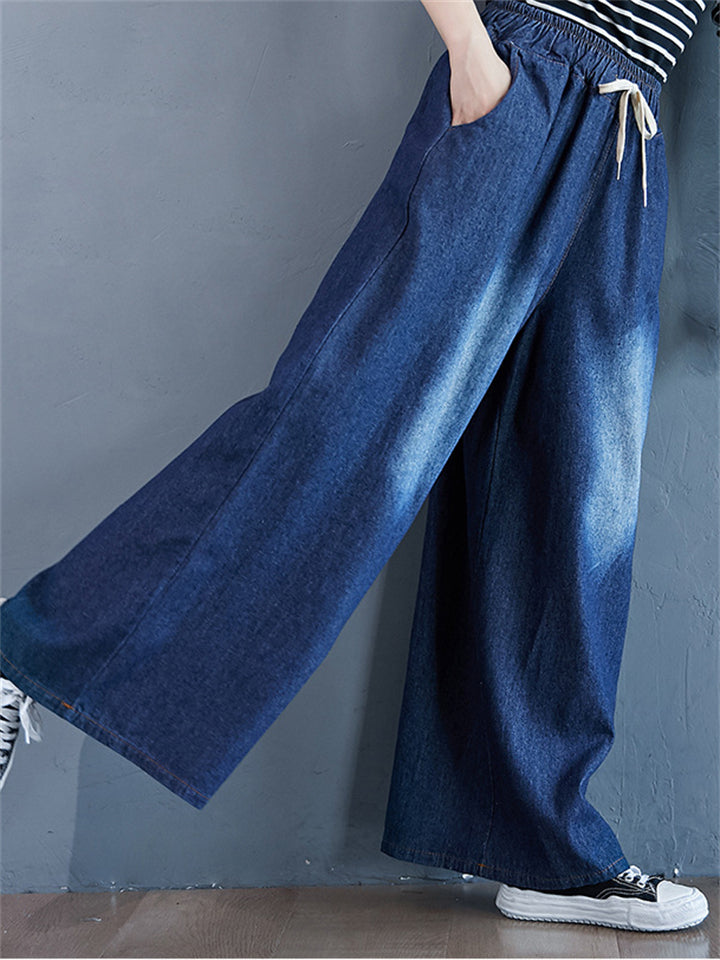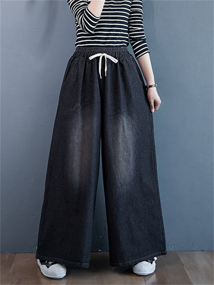 Loose Elastic Waist Wide Leg Jeans for Women