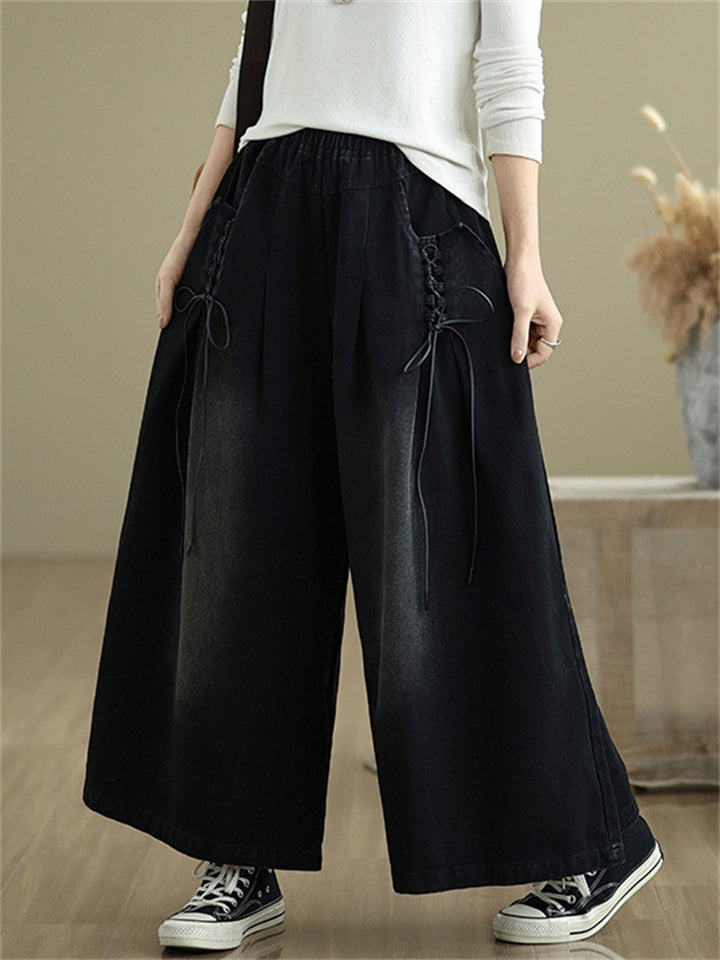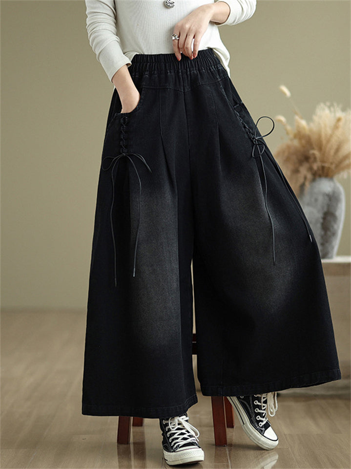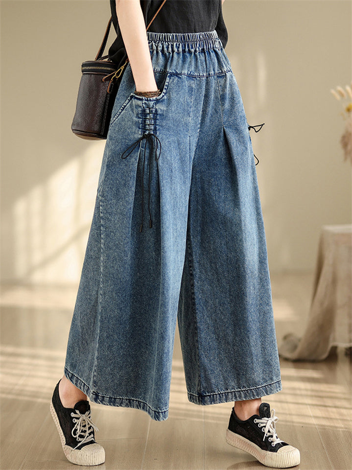 Summer Women's Patchwork Wide Leg Cropped Jeans