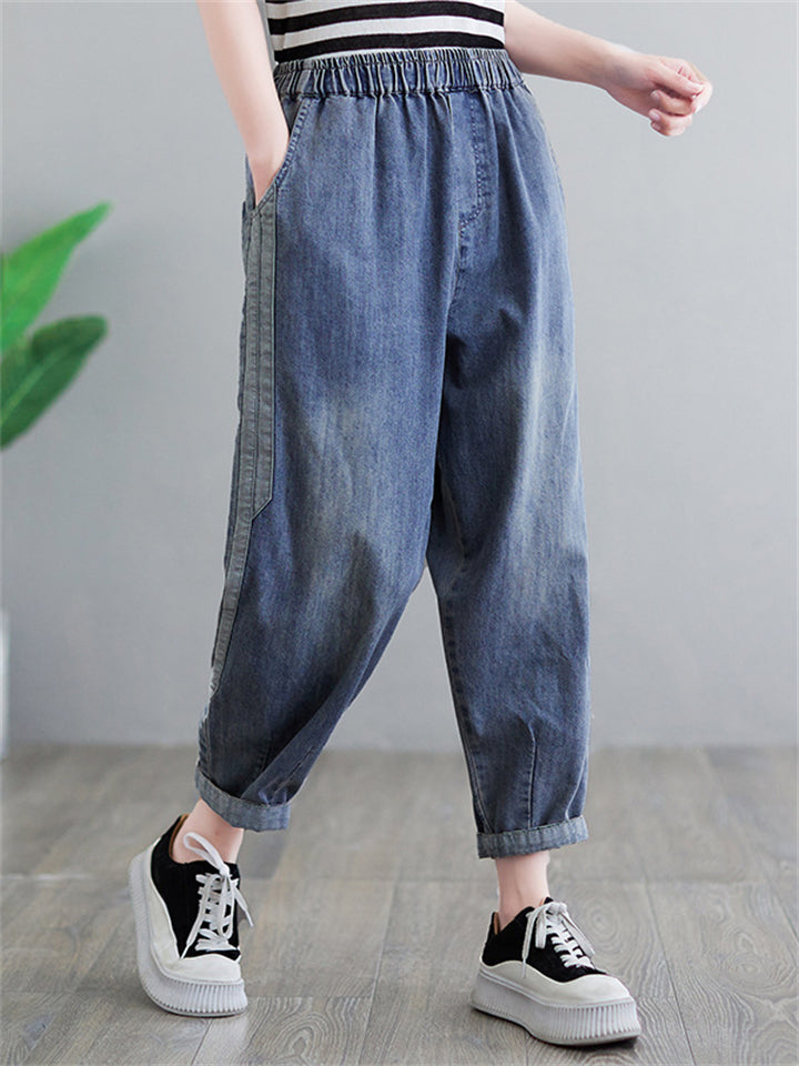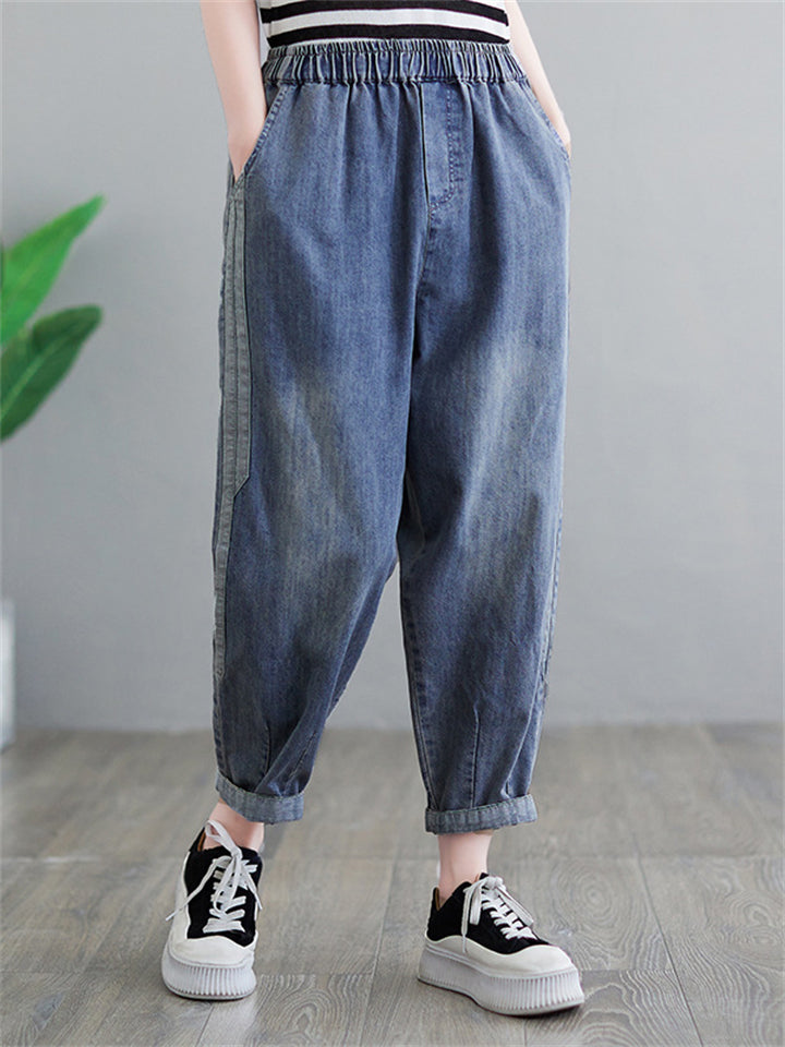 Women's Casual Solid Color Pockets Harem Denim Jeans