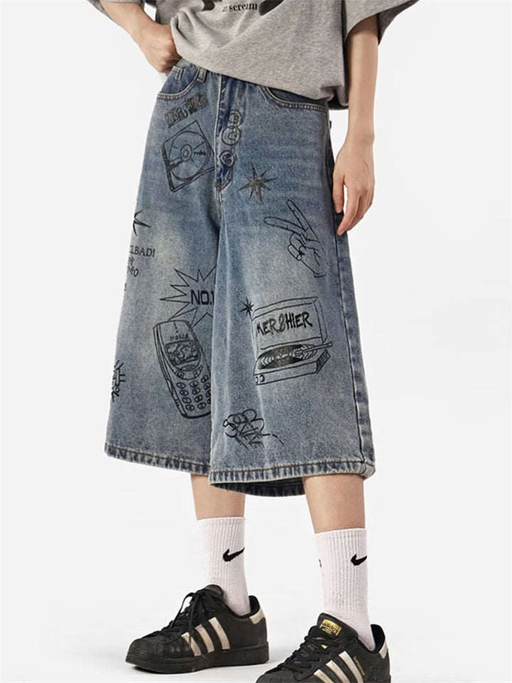 Women's Street Hip Hop Graffiti Wide Leg Cropped Jeans