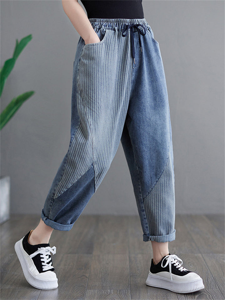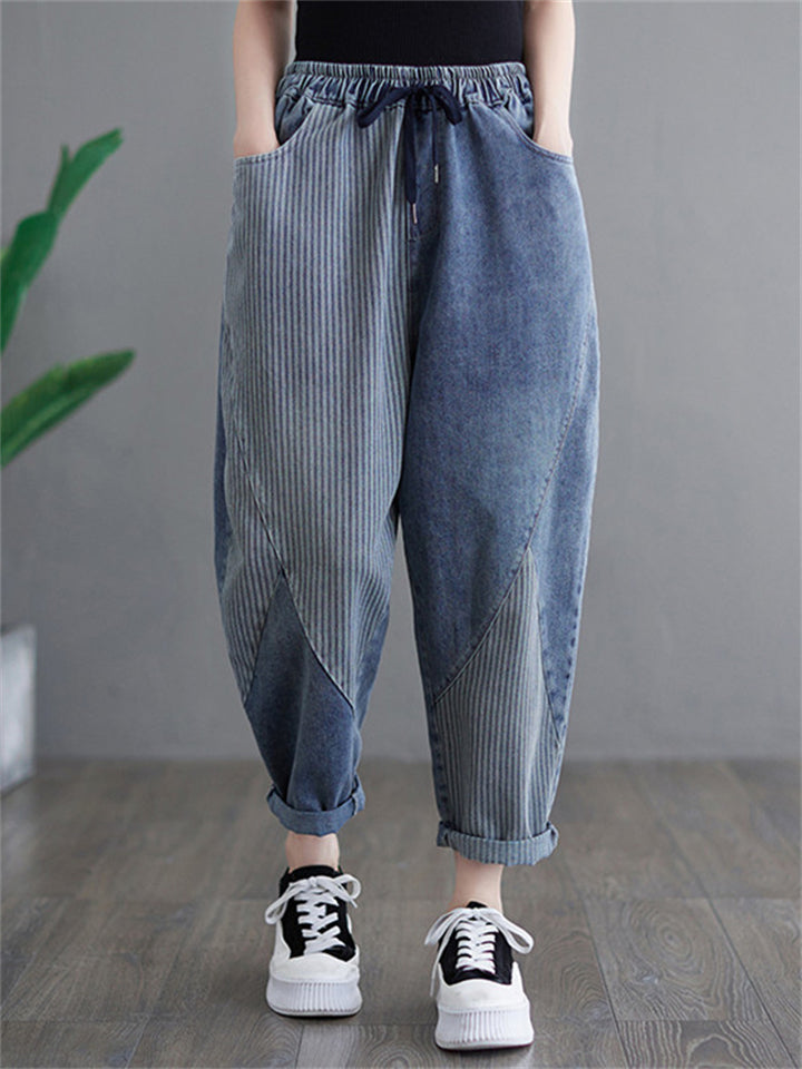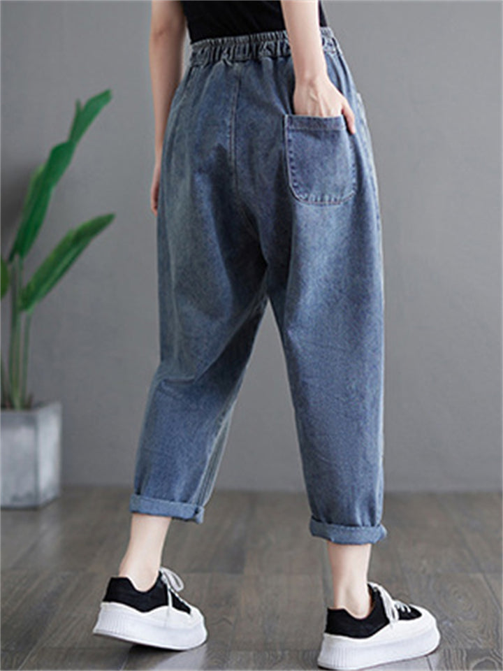 Women's Casual Solid Color Pockets Harem Denim Jeans