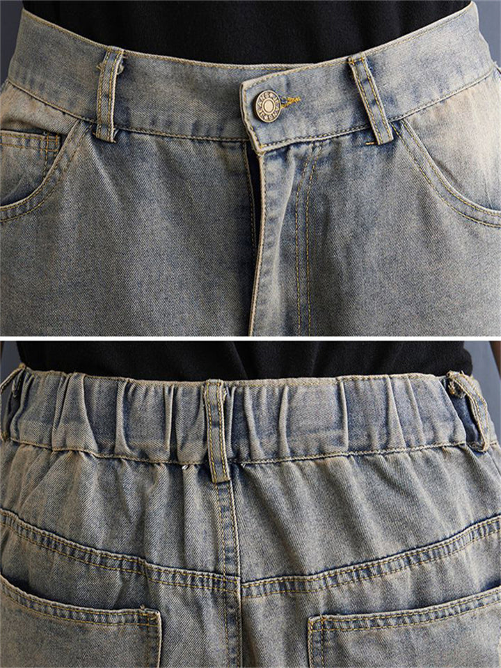 Women's Casual Solid Color Pockets Harem Denim Jeans