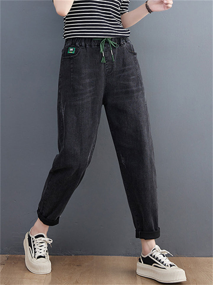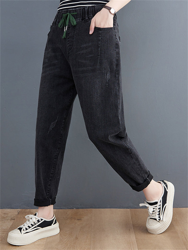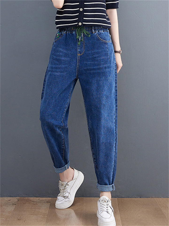 Women's Casual Solid Color Pockets Harem Denim Jeans