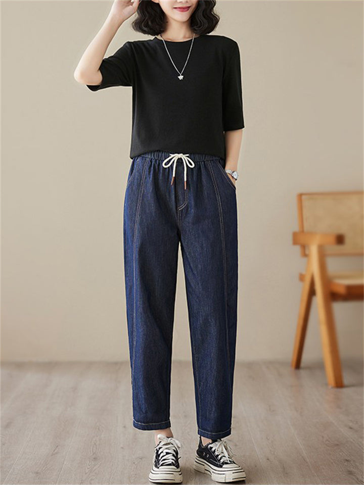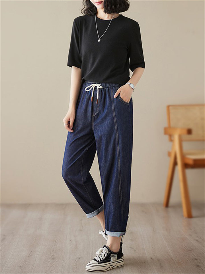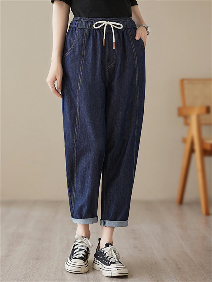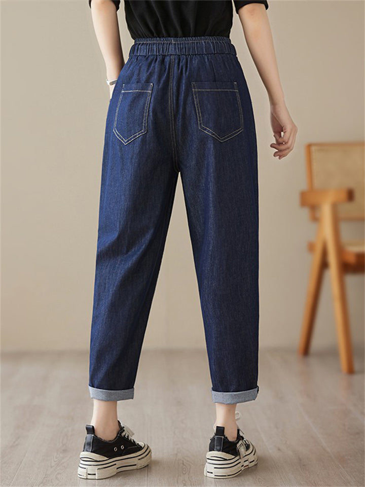 Women's Casual Solid Color Pockets Harem Denim Jeans