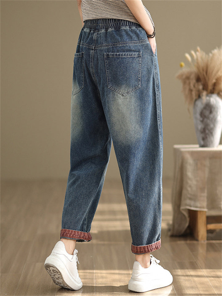 Women's Casual Solid Color Pockets Harem Denim Jeans