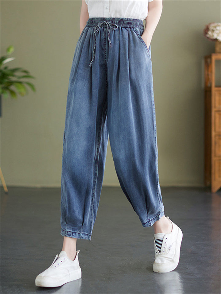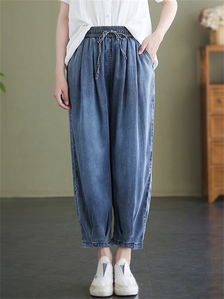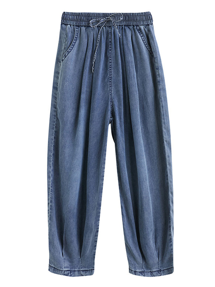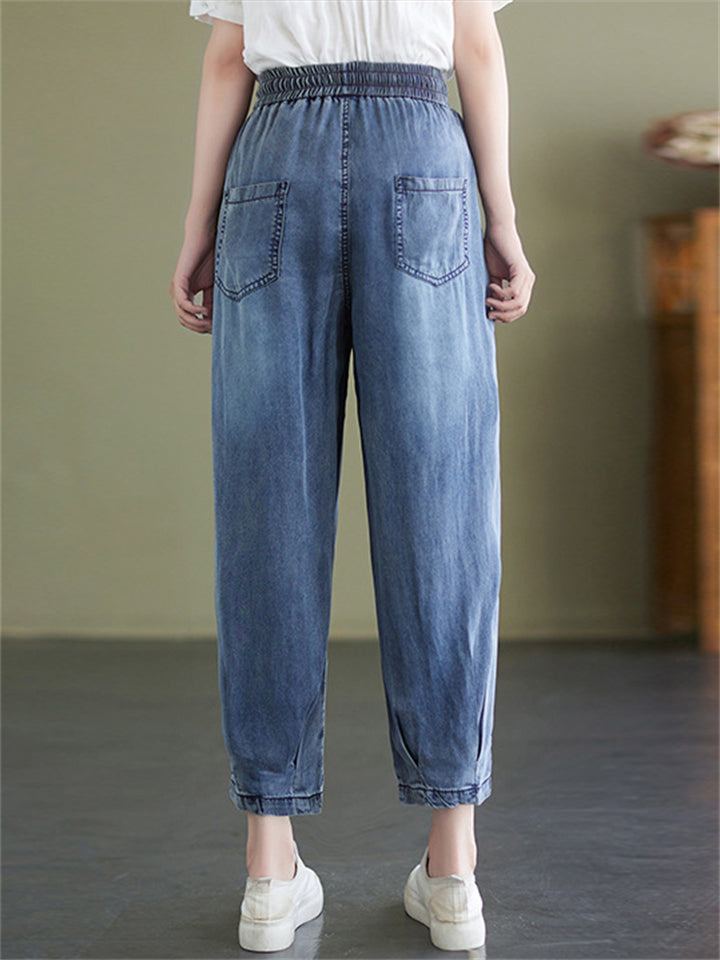 Women's Casual Solid Color Pockets Harem Denim Jeans
