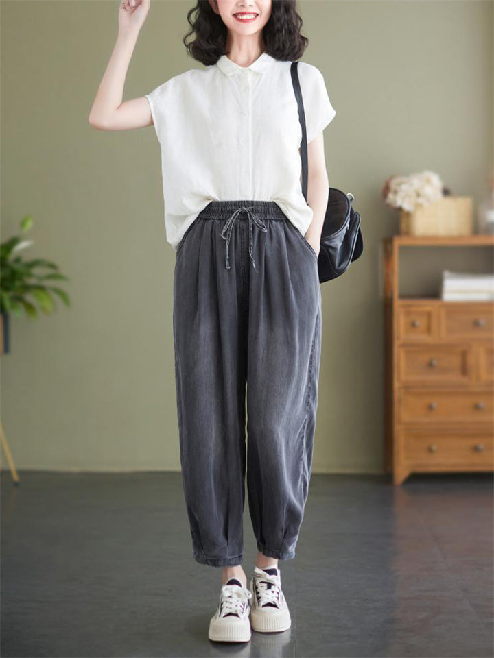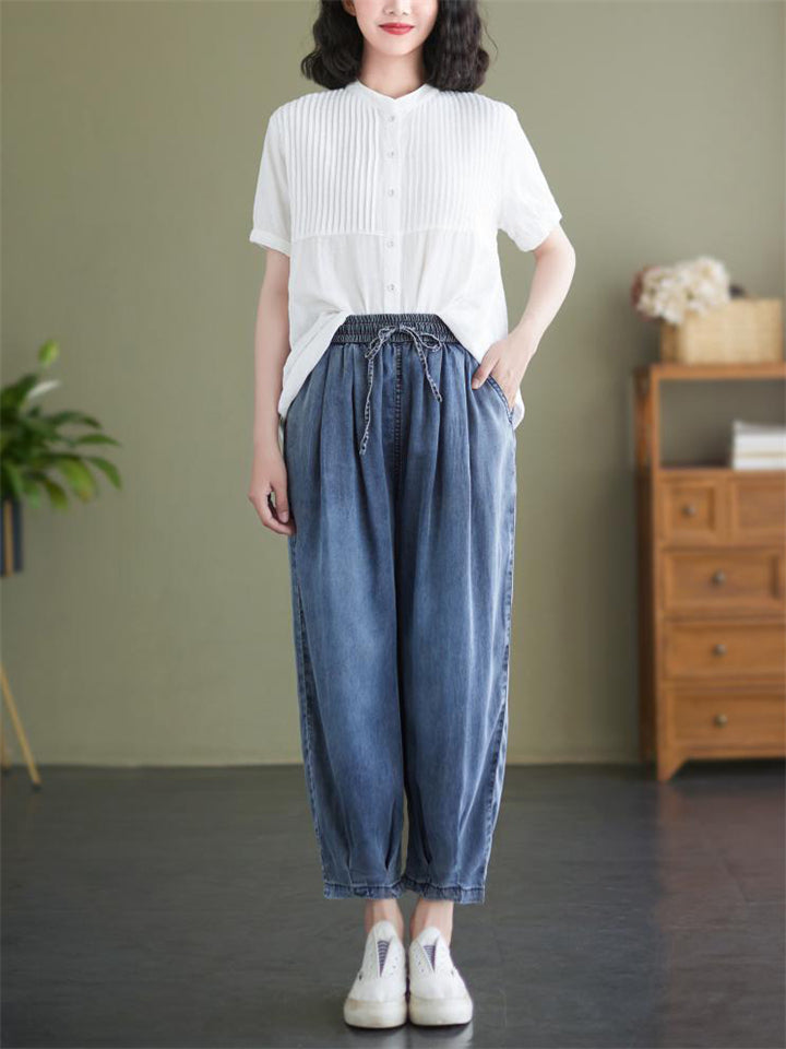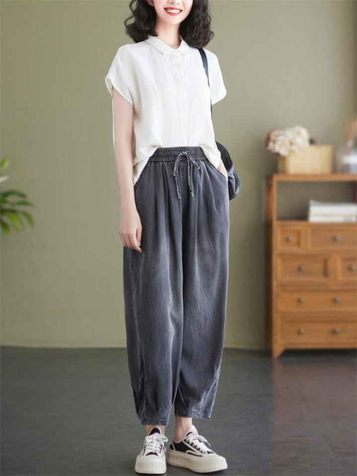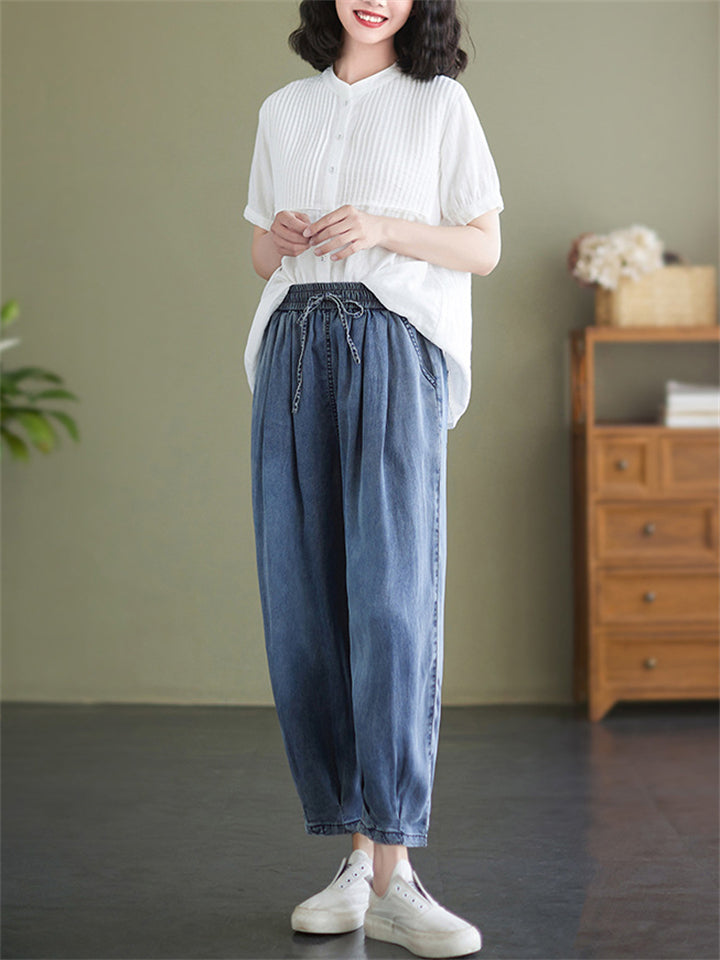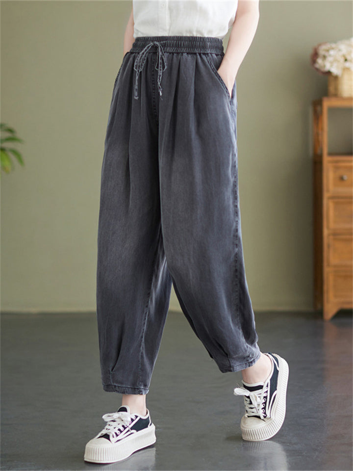 Women's Casual Solid Color Pockets Harem Denim Jeans