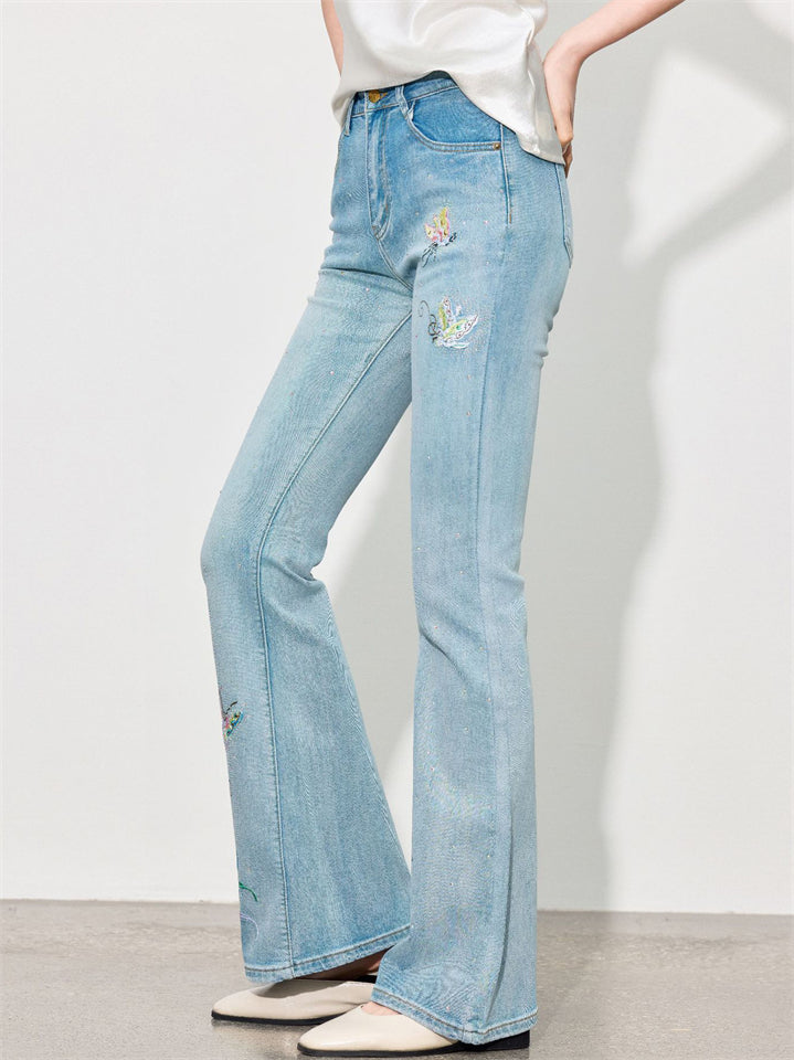 Women's Blue Embroidery High-rise Bootcut Jeans