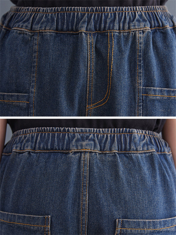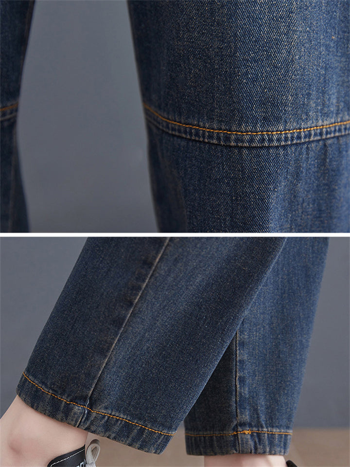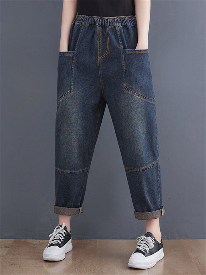 Women's Casual Solid Color Pockets Harem Denim Jeans